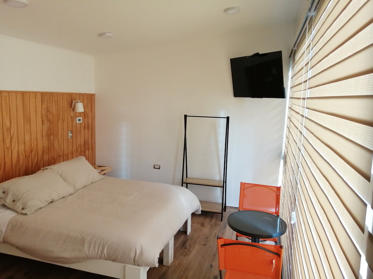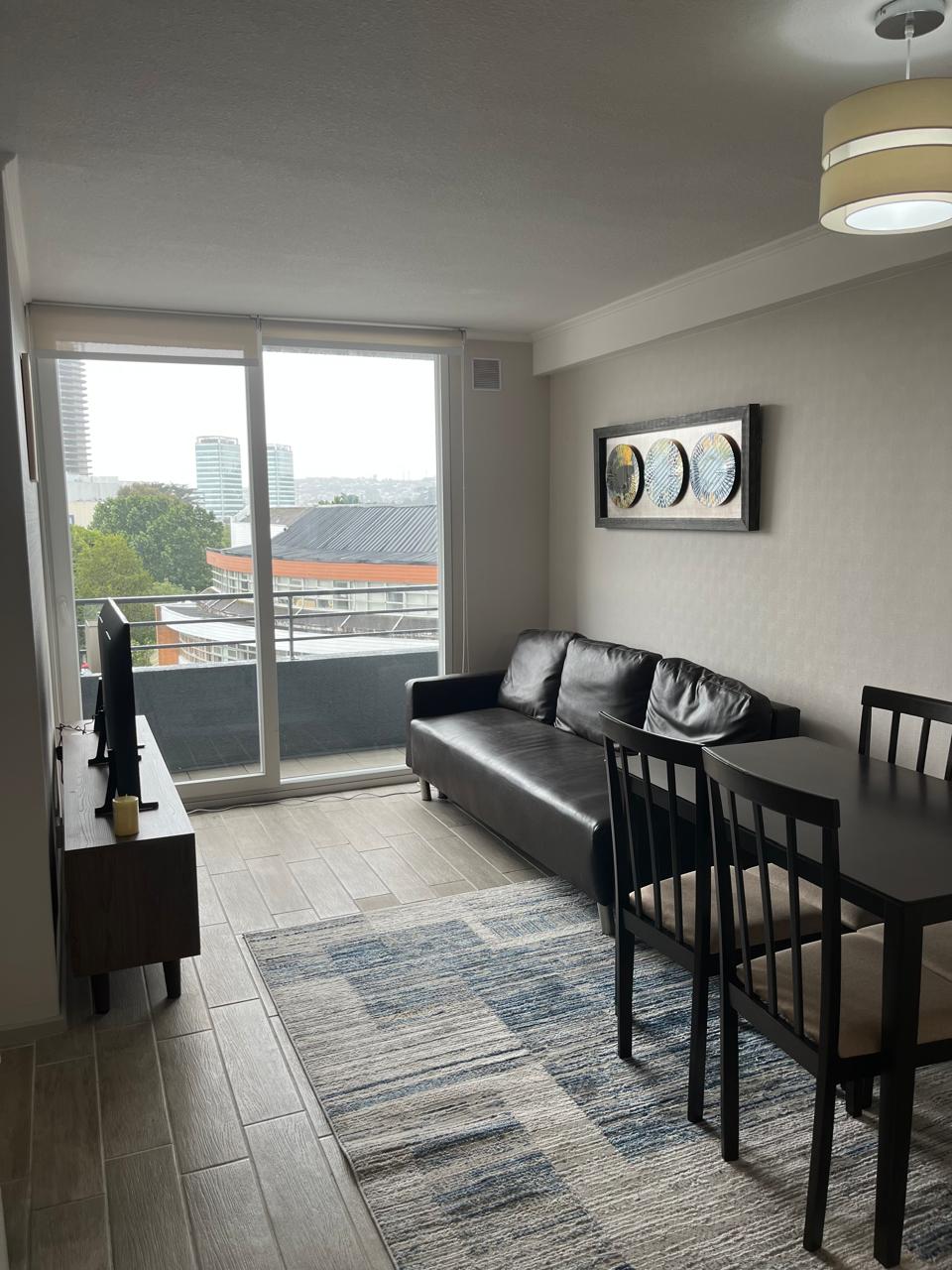 Un espacio pensado para sentirse comodo desde el primer día perfecto para difrutar de la ciudad, alojamiento céntrico, ubicación privilegiada cerca de los principales servicios, comercio, bomba de bencina, centros comerciales, restaurantes y supermecados, el departamento cuenta con cocina y equipamiento, incluyendo microondas y horno, tambien se incluye tv y wi-fi, ademas cuenta con balcón con vista a la ciudad, areas comunes, estacionamiento privado y servicio de porteria.