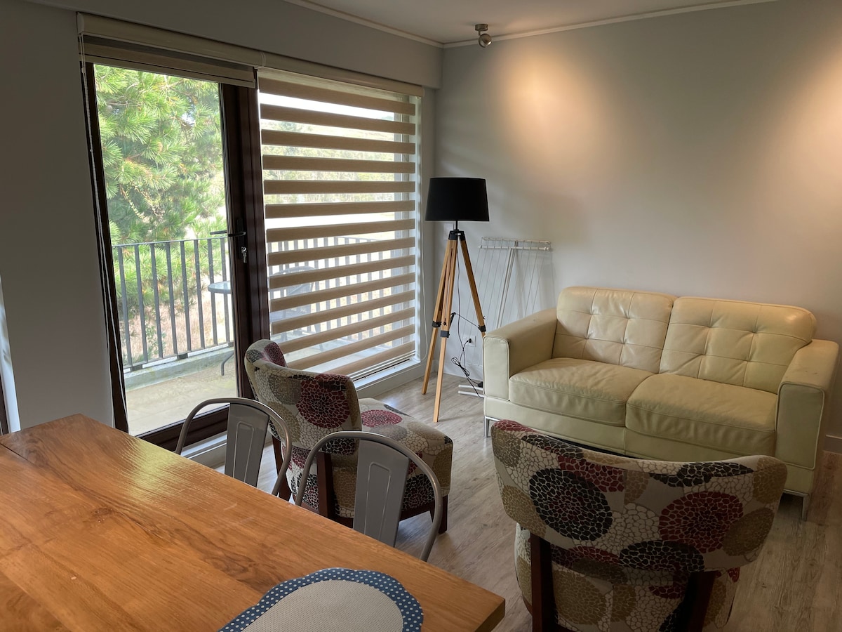 Disfruta de Puerto Varas cerca de todo y en un rico apartamento, con una linda vista al lago y al volcán, y a 2 cuadras de la costanera y de la playa principal de Puerto Varas.