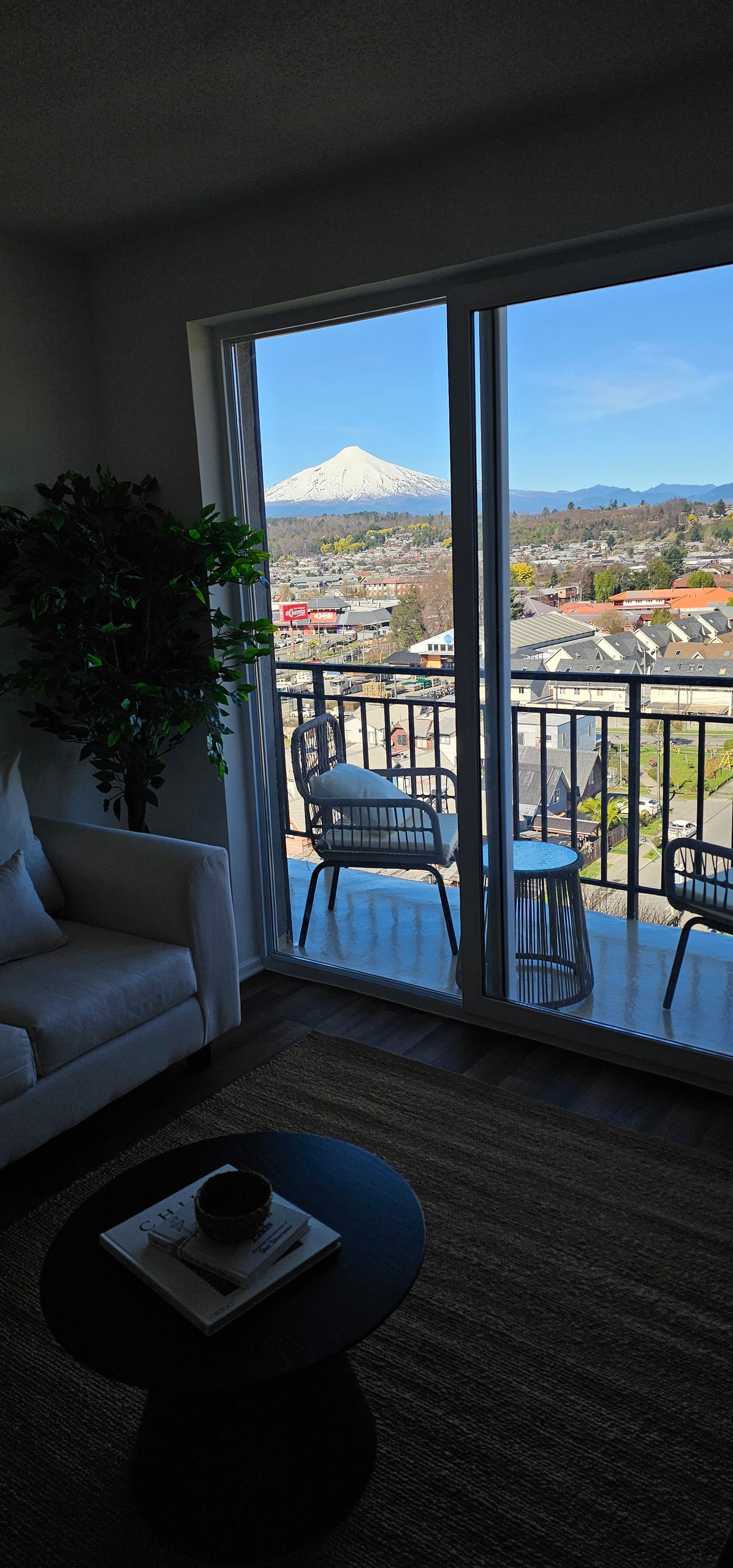 Disfruta de una estadía tranquila y céntrica, con vista al lago y volcán. Departamento completamente equipado, solo necesitas traer tu ropa, y comida, del resto ya nos hemos encargado para que su estadía sea lo más grata posible y que la única preocupación sea elegir desde cuál de las dos terrazas disfrutar la vista. Ubicado a solo cinco cuadras del centro y diez minutos de la costanera caminando.