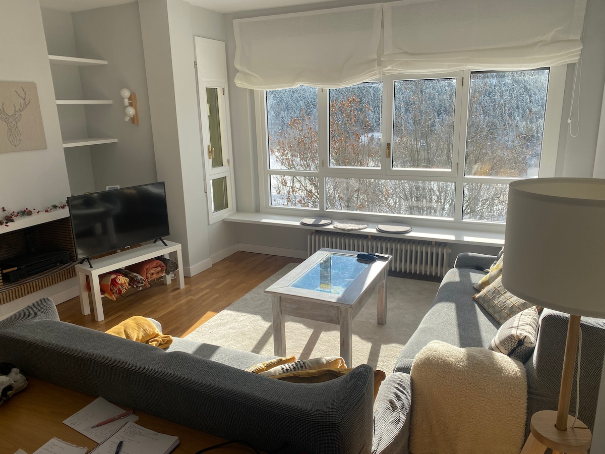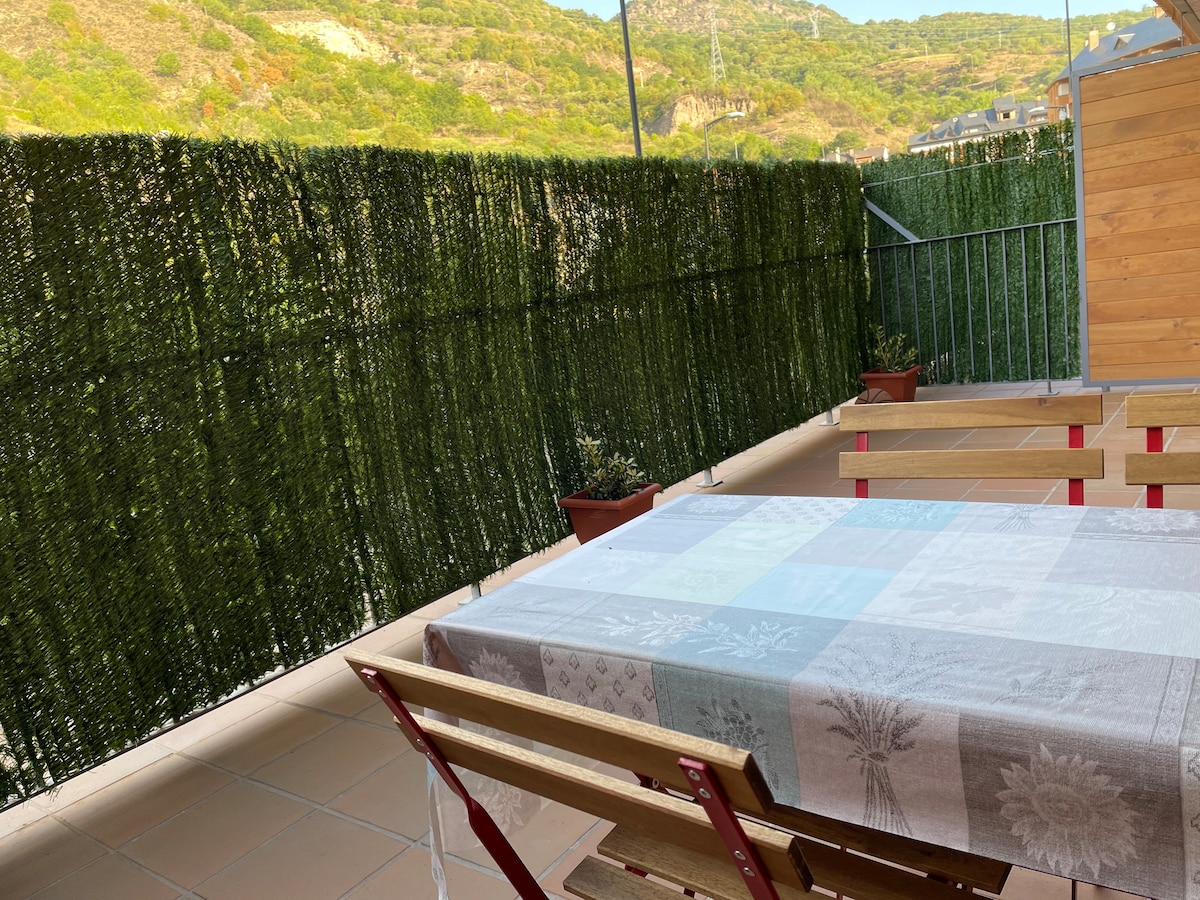 Apartamento duplex planta baja de 90m2, con capacidad para cinco personas, en pleno corazón del Parc Natural Alt Pirineu, base para hacer montañismo y esquiar. El pueblo es muy auténtico y tranquilo. El apartamento está en el extremo del pueblo, en zona muy tranquila, tiene salida directa a jardín y terraza propia con vistas espléndidas a la montaña. Totalmente equipado con televisión y electrodomésticos