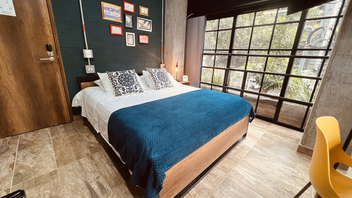 WELCOME TO ONE APARTMENTS Brand new studio in Laureles - top district of Medellín! This rustic industrial studio is equal parts chic and relaxing with sleek modernist design and warm wood accents. For your comfort use our relaxing and bubbly jacuzzi as many times as you want. Then drift off to sleep in a queen-size bed with our luxury linens. The atmosphere is perfect for young professionals, students, couples, digital nomads, or friends looking for a cost-effective space in a prime location.