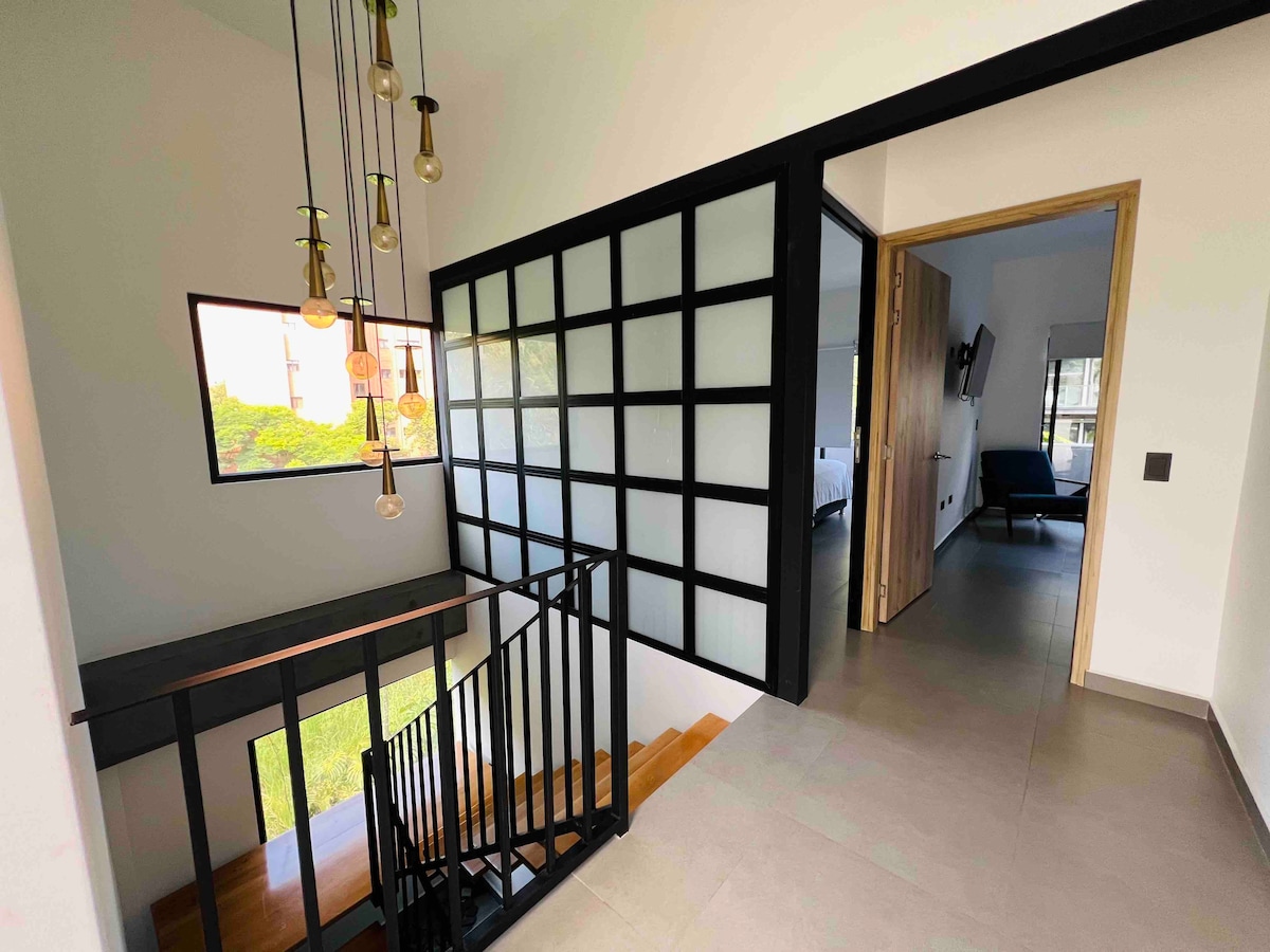 Rainforest oasis on the river. Central location! Only 2 minutes walking from the best upscale restaurants in Provenza. Near the action, but you can't hear the noise. Luxury digital nomad paradise with everything you need to work in zen. Centrally located…yet feels like you're in a nature retreat. Quiet location, perfect for working remotely. Unique, eco-friendly design. Urban minimalist design meets Tulum-style tropical rainforest. Private jacuzzi on an open terrace with outdoor BBQ.