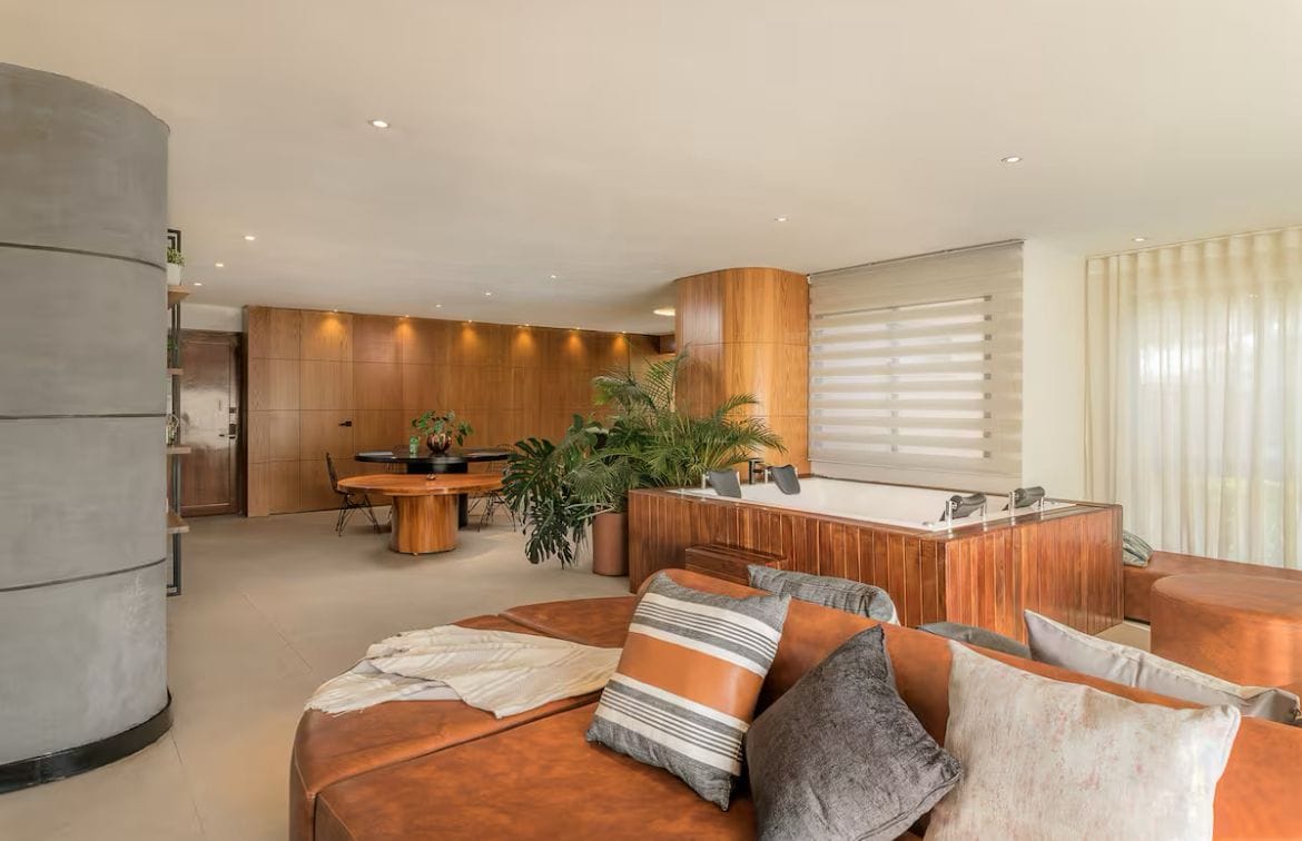 Indulge in Medellín from this exclusive studio with a private skyline jacuzzi, king bed, A/C, and breathtaking city views — the ultimate retreat for elegance, comfort, and vibrant nightlife. Nestled in El Poblado, steps from Provenza’s restaurants, rooftop bars, cafés, and galleries, with Parque Lleras nightlife minutes away. Enjoy 54" smart TV with Netflix, high-speed Wi-Fi workspace, kitchen, washer/dryer, gym, sauna, pool, and on-site bars, restaurants, and gallery.