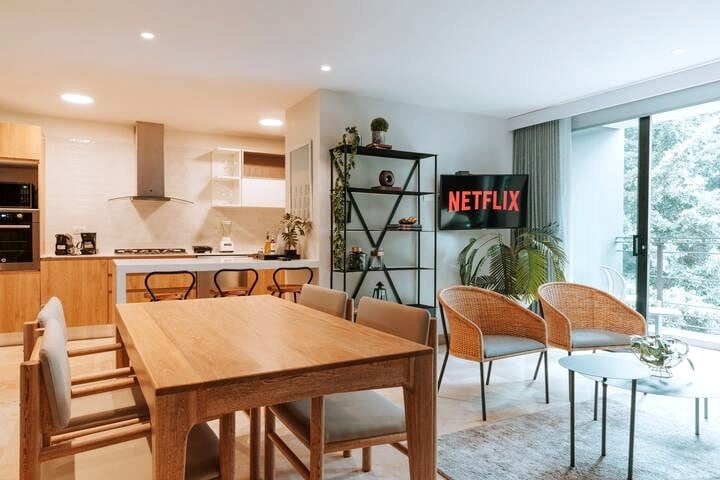 ¡Welcome to our modern apartment in Provenza, El poblado! Discover Urban elegance in our modern Medellín apartment with unbeatable location. Stylish design meets comfort, offering a unique stay in the heart of the city. Immerse yourself in local culture, surrounded by trendy cafes, clubs, restaurants, and iconic places. ¡Your perfect retreat awaits for you!