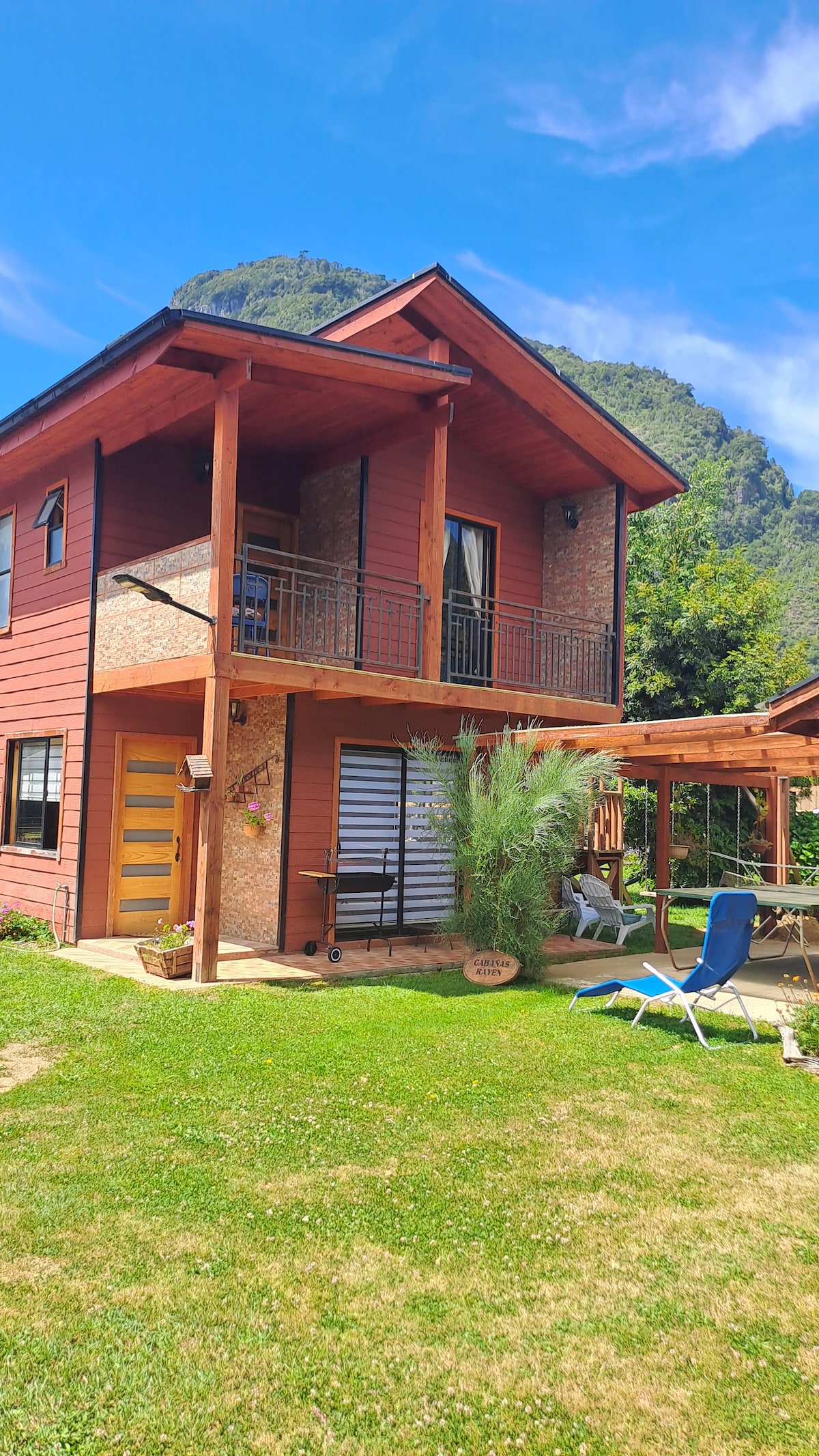🌳 Al llegar te recibe una hermosa variedad de árboles nativos y 400m2 de jardín con espacios diseñados para tu descanso y disfrute en familia; Hamacas, sillones para ver el atardecer, mesa de terraza y parrilla para disfrutar tardes de asado y llevarte los mejores recuerdos. Con vista despejada a las montañas, sus cascadas y atardeceres mágicos de la zona. ⛰️ ✨ La casa cuenta con 2 estacionamientos, calefacción, wifi, TV cable y agua purificada sin costo adicional para ti.