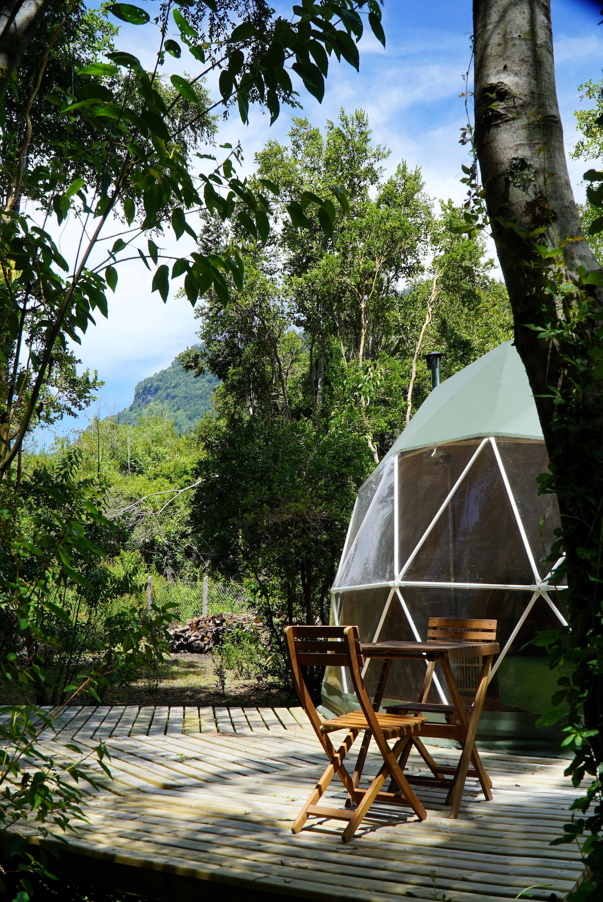 🌿 Glamping dome in native forest near the Nilahue River. Queen bed, pellet heating, private bathroom, equipped kitchen and outdoor wood-fired hot tub under the stars. Satellite wifi. Ideal for reconnecting with nature without sacrificing comfort. 10 min from the lake and 30 min from Futrono and Lago Ranco. Hosts: yoga/Ayurveda instructor and French teacher. Follow us @bosquealmadomo 🌲