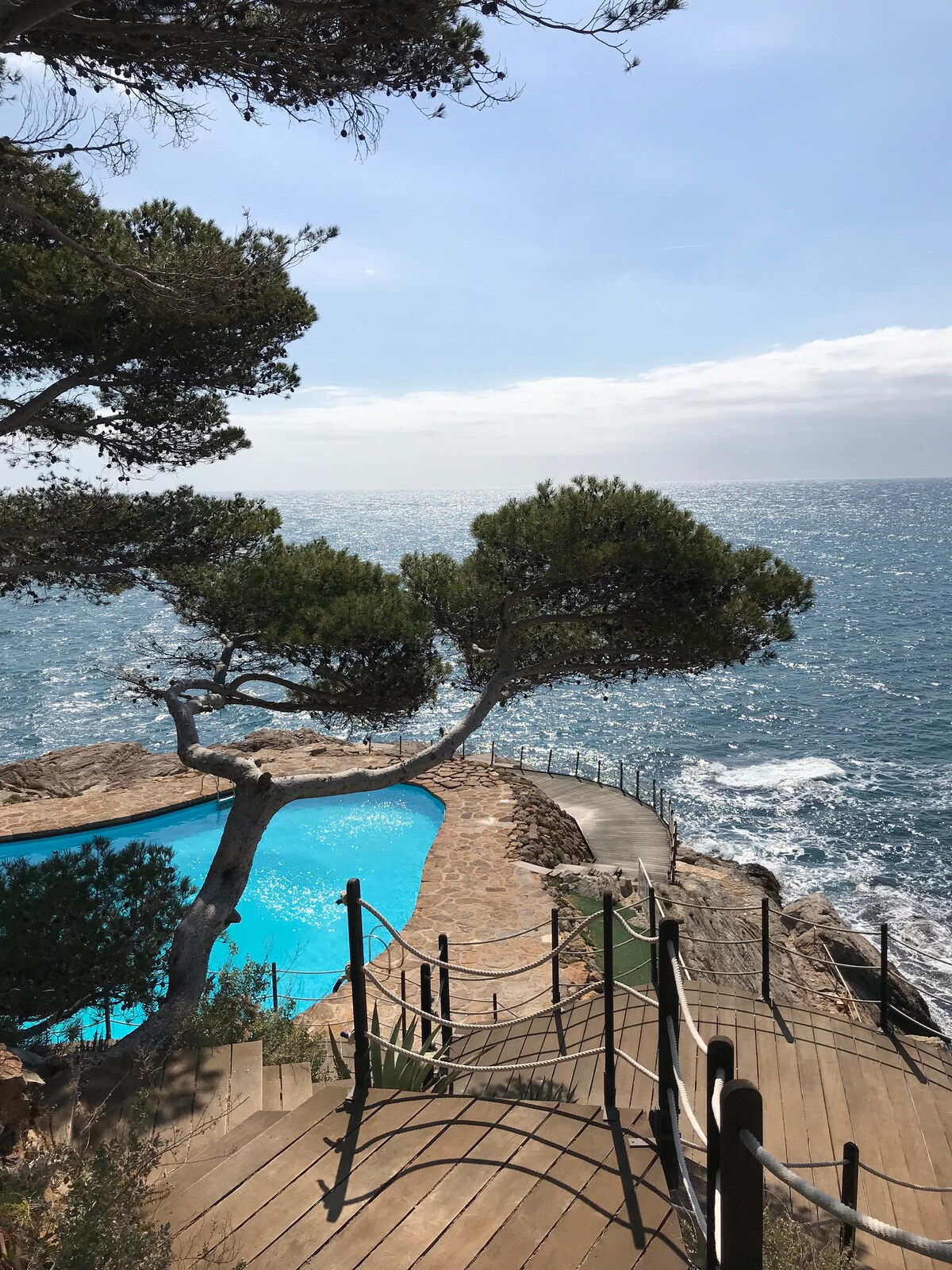 Recently designed by an interior designer and rebuilt, this loft has breathtaking views over the ocean from every spot in the apartment. It is on the top floor of Cap sa Sal, a historical building that was originally "the" luxury spot in the Costa Brava in the 60s. It was then turned into private apartments 40 years ago and this specific one has been redone recently. OPTIONAL: include a 7m speed boat with 250 horsepower motor for 250 euros x day. A boat licence is required and extra deposit