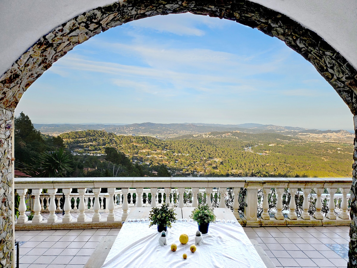 Home 20km from Barcelona, 15 min from the Circuit and 12 min from the beach. Enjoy a 100m² loft-style living room with a designer fireplace and panoramic views of a saltwater infinity pool surrounded by nature. If you love the outdoors, you'll enjoy the beautiful garden and outdoor kitchen with BBQ. Sant Verd is a peaceful retreat ideal for families. Parties or events are strictly prohibited.