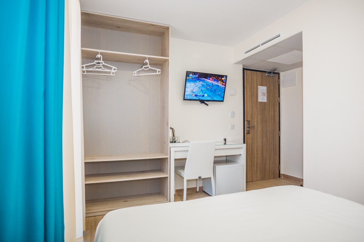 The basic rooms are decorated in blue tones, in harmony with the sea and have an elegant and balanced atmosphere tha offers not only the comfort characteristic of the rest of the hotel, but also the relaxation necessary to enjoy your holiday. The room has two beds, area is 16sqm with air condition, heating, TV, wifi and hairdryer. Tourist tax not included 0,66€/night paid upon arrival at the hotel.