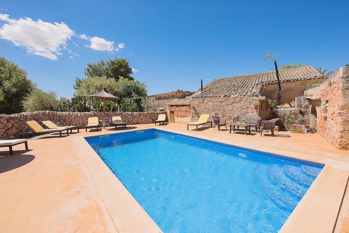 A 10 minutos de la playa de Es Trenc, Sa Ràpita, Ses Covetes..., a 15 minutos de Caló des Moro, Cala Almonia, Cala Figuera ... Amplias habitaciones. Wifi. Antena parabólica .Barbacoa. Ropa de cama y de baño. Cocina completamente equipada.Aire Acondicionado y Calefacción. Piscina de 10 x 5 metros de agua salada. Zona Tranquila. Finca vallada.