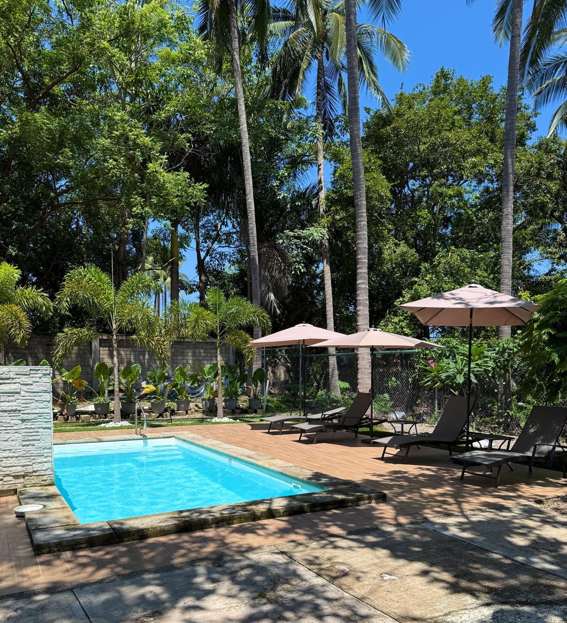 Make unforgettable memories at this unique and family friendly place. This home away from home, has an fully equipped kitchen, 3 bedrooms, 3 bathrooms, with modern air conditioning, 12 ft ceiling with modern fans in each room, a small (cool)dipping pool, rooftop terrace, and a patio with palapas. It's located right on the main street near convenience stores, restaurants, shops, and pharmacies. 10 mins stroll to the beach for breathtaking sunsets and sunrises. Or hit the waves for surfing ride.