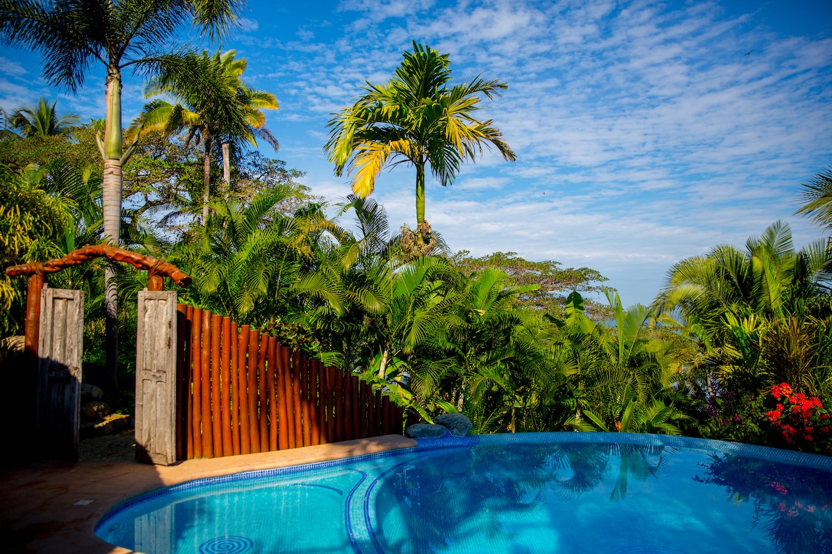 The Palm Tree House at Casitas Patz was designed to live in connection with nature from comfort and beauty. It is surrounded by the tropical jungle and steps from a beautiful beach only known by locals. On one side of the house, you can also enjoy some small waterfalls with natural ponds to cool off and enjoy the sound of running water. The water is completely natural, chemical free. The fish and plants of the last pond help us keep the water clean and create an incredible ecosystem.