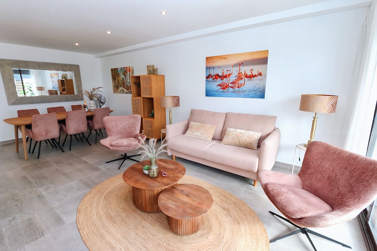 Stunning Seaview Getaway in San Pedro del Pinatar This peaceful home offers amazing views of San Pedro Salinas and flamingos. Enjoy sunrises and sunsets from the master bedroom. Features: - Air-conditioning in bedrooms and living room - 2 renovated bathrooms with large showers - Communal pool for relaxation - Just 5 minutes by car to Torre Derribada Beach and Villananitos Beach Perfect for beach lovers and nature enthusiasts. Book your ideal escape today!