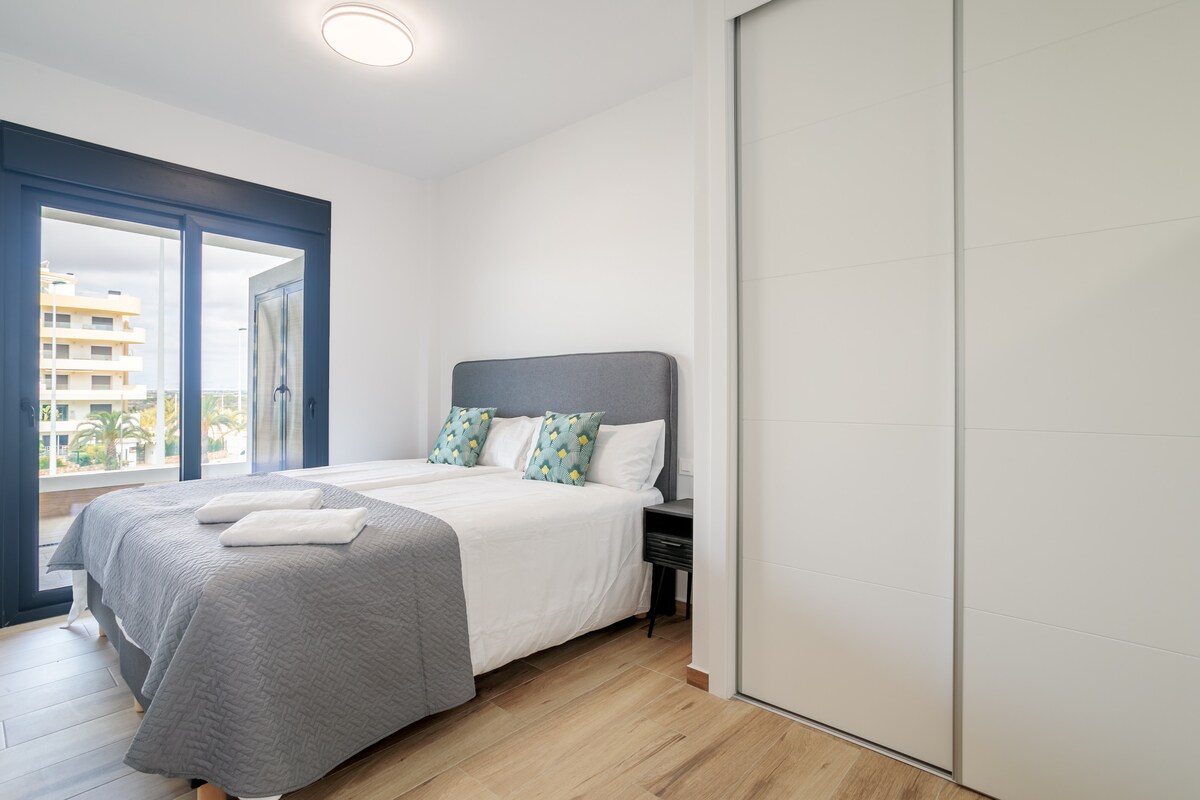 Elegante apartamento vacacional situado en Valverde (Elche), a pocos minutos en coche de las mejores playas de la Costa Blanca. Ideal para desconectar, disfrutar del sol y descansar en un entorno moderno y natural. Cocina totalmente equipada, zona de comedor con sofá cama, Smart TV y aire acondicionado a partir de junio. Relájate en la piscina privada rodeada de naturaleza. En una zona tranquila, pero cerca de todo: playas, restaurantes, supermercados y rutas para pasear o montar en bici.