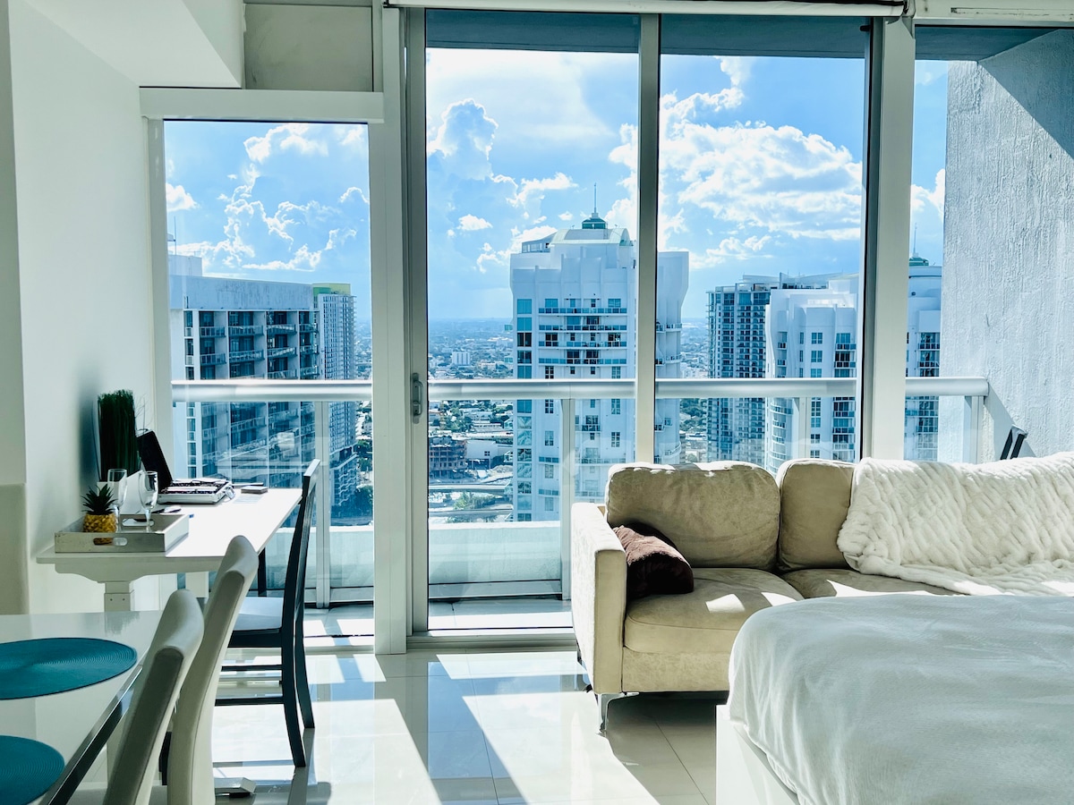 Amazing view of a fully furnished chic studio, ideal for a getaway at the dynamic neighborhood of Miami Brickell. Located at the 41st floor ofThe Icon Brickell Residences , this studio has wifi to work remotely , TV with Roki fine bedding , high end appliances and special details that makes this place special for a great experience! The Icon Brickell has valet parking only. Check in 3:00 pm only. Furnished with King bed and sofa bed is upon request. Age requirement 21+.