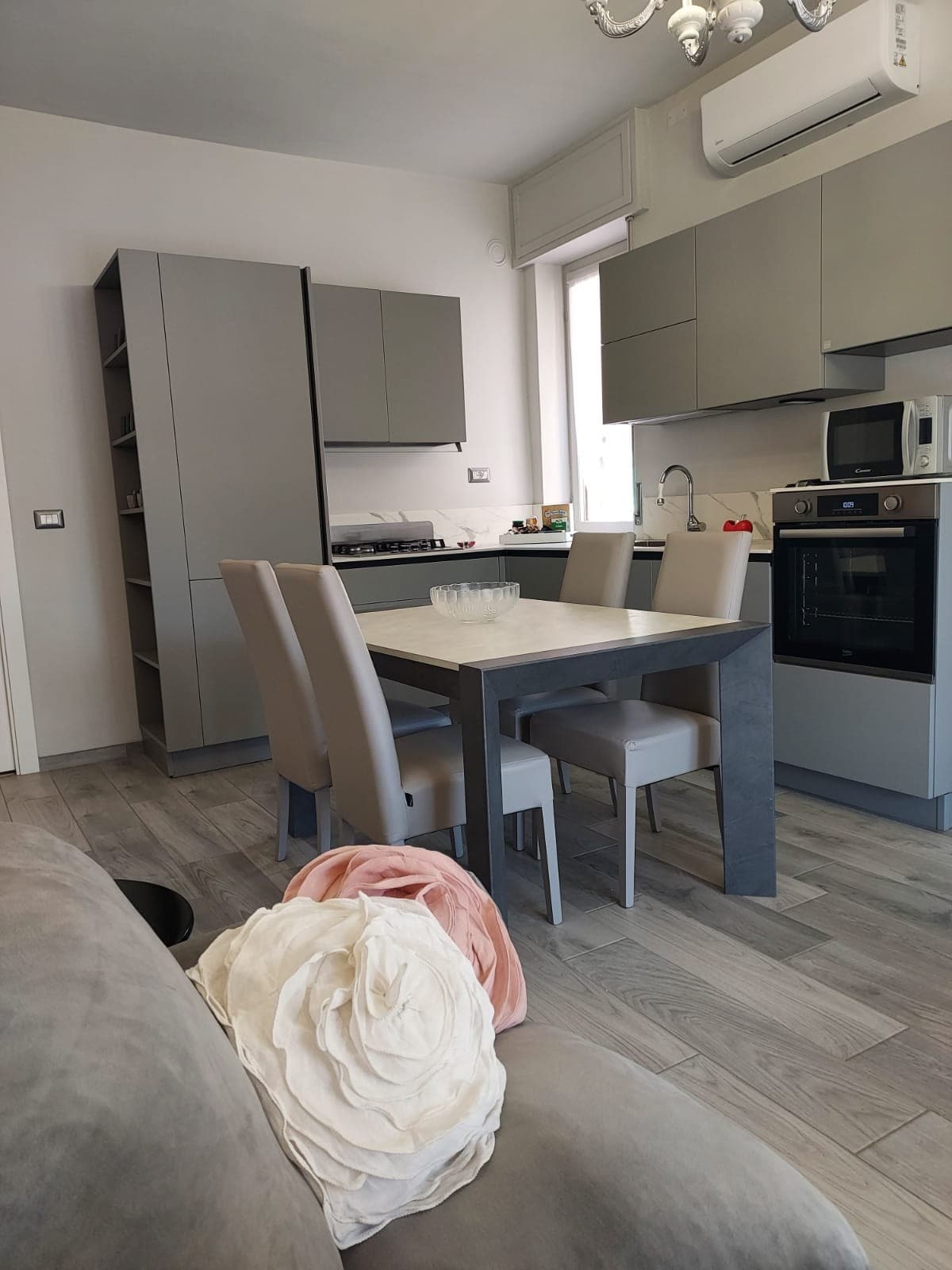 Ampio e luminoso appartamento appena ristrutturato, interamente circondato da terrazzo e affacciato sulla verde Piazza Giardini, dista solamente 300 metri dal mare. Nelle adiacenze numerosi parcheggi non a pagamento. Comodamente sotto casa negozi alimentari, supermercato, bar, pettinatrice e centro estetico. Le tre stanze sono dotate di porta finestra che affaccia sul terrazzo. L'ampio disimpegno rende tutte le stanze indipendenti.