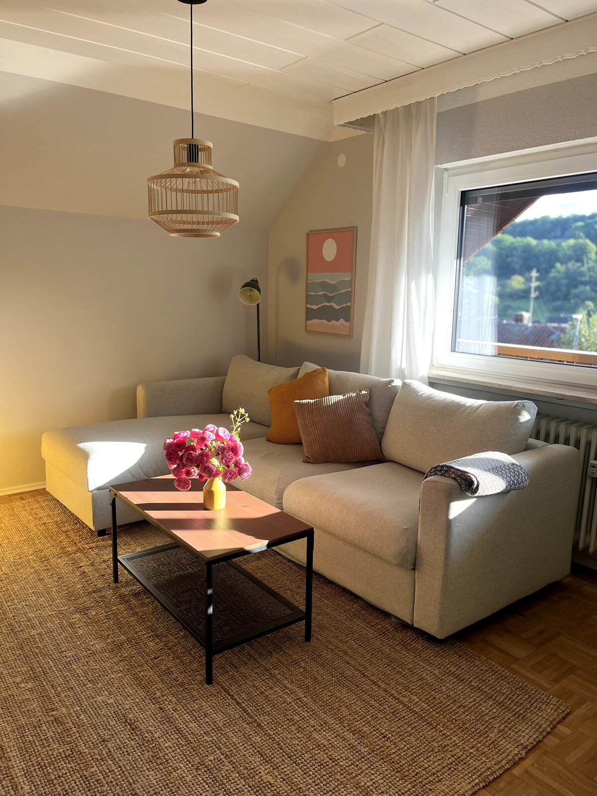 Haus mit kernsanierte 70 qm² OG-Wohnung und mit wundervollem Ausblick. Das Apartment ist lichtdurchflutet, modern und gemütlich. In der Wohnung ist folgendes vorhanden: - Einbauküche - Bad mit Badewanne - 1. Schlafzimmer mit Boxspringbett 140x200 - 2. Schlafzimmer mit Kleiderschrank und Einzelbett - Wohnzimmer mit Schlafcouch, Esstisch und Balkon Einfach Urlaub genießen: - entspannen - wandern in den Laubwäldern - Shopping und Sightseeing in Heidelberg - Neckartal Sehenswürdigkeiten besichtigen