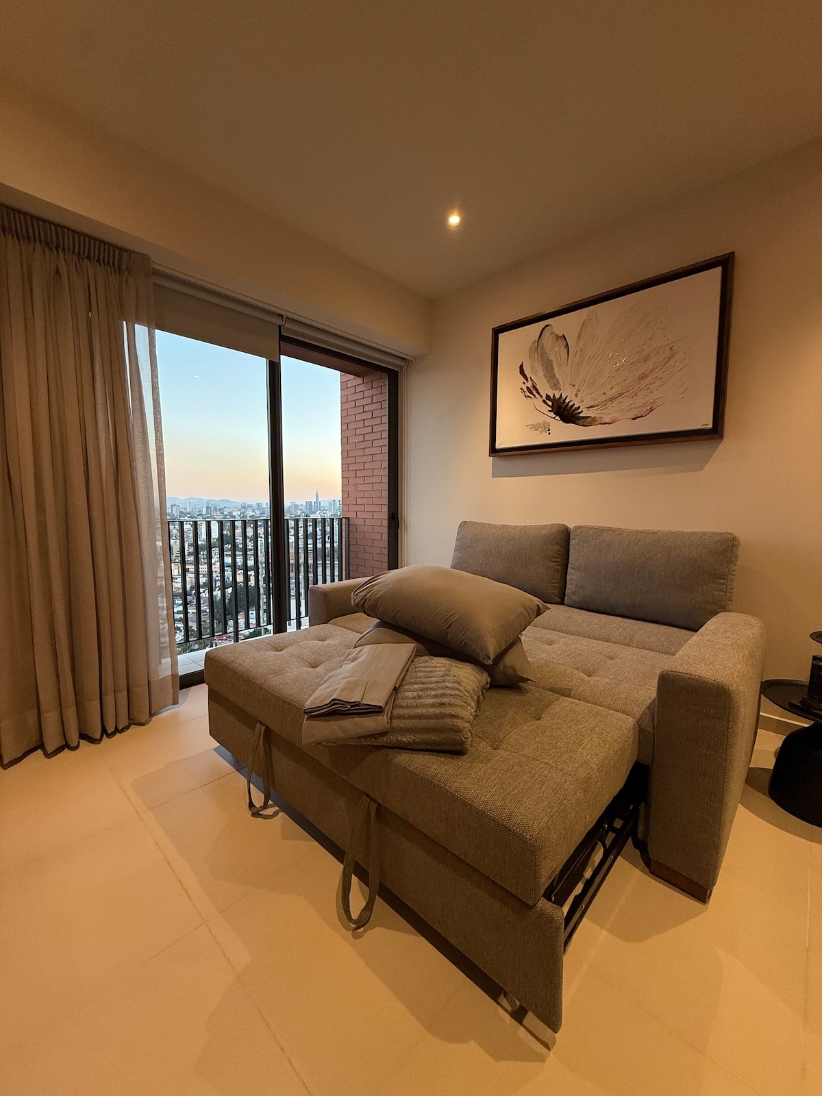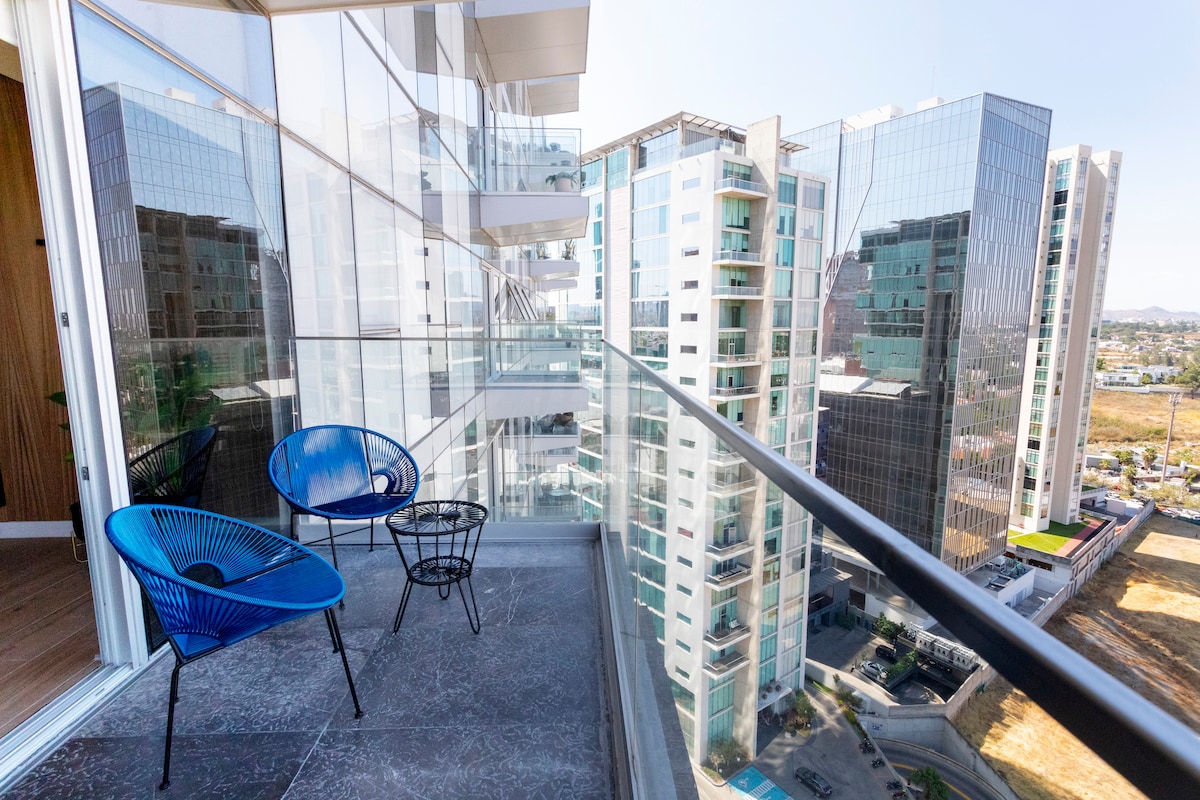 Enjoy Guadalajara from above in this modern 12th-floor luxury apartment with a spectacular panoramic view of the city. Unbeatable location just steps from Midtown Mall, the Financial District, Los Colomos Forest, Parque Alcalde, Acuario Michin, and with excellent access to public transportation and the historic downtown. Ideal for business trips, romantic getaways, or family stays, this apartment combines luxury and comfort to make your Guadalajara experience unforgettable.