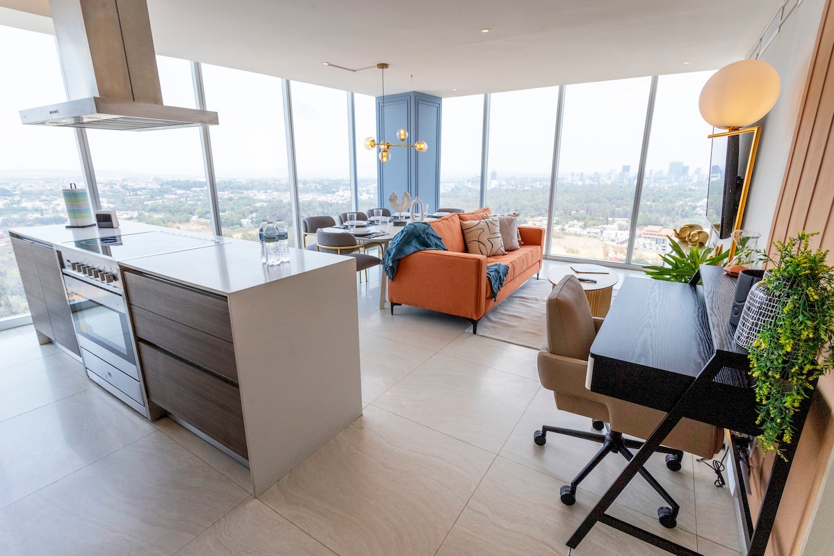 Perched on a high-floor corner, this luxurious 2,500 sq ft (235 m²) apartment in Zapopan’s exclusive Valle Real neighborhood, offering unparalleled panoramic views. This custom-furnished sanctuary is designed for the high-end traveler, featuring hotel-level amenities like a pool and 24/7 security. With 600 Mbps Wi-Fi and a prime location near the Andares Mall and the Oracle Campus, it serves as the ultimate corporate home base or affluent family retreat in the Guadalajara Metro Area. ⸻