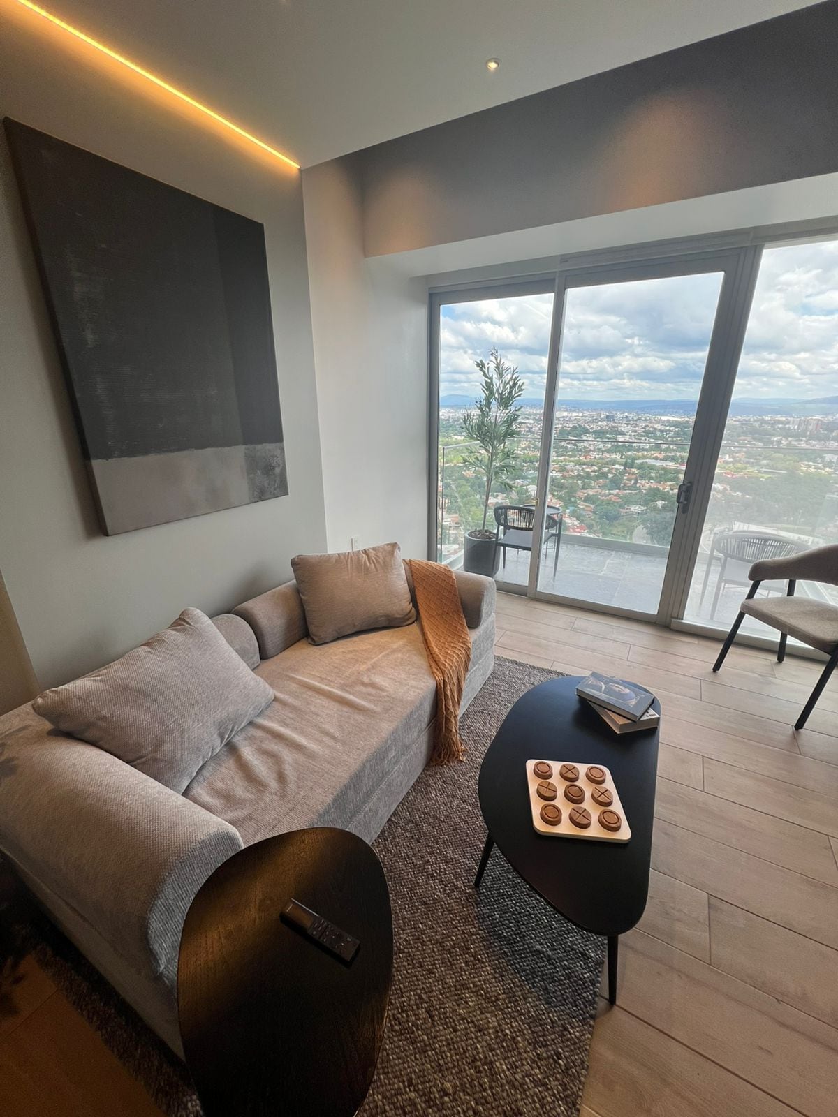Lujoso departamento en Guadalajara, decorado por el despacho FNisino y con muebles fabricados a la medida por manos tapatías. Hospédate en uno de los edificios más exclusivos y nuevos de Providencia, cerca de la zona financiera, el Bosque Colomos, Punto Sao Paulo y solo a 10 minutos de Andares. Espacio excepcionalmente cómodo, que cuenta con todos los servicios y que te hará pasar una increíble estancia. Cuenta con seguridad 24/7, alberca, gimnasio, coworking y estacionamiento propio.