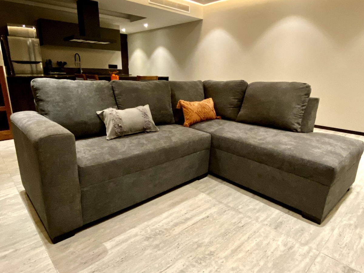 Very spacious home with two bedrooms (King and Queen), AC, smart lights, electric curtains, high speed internet Wi-Fi, Infinity pool, lounge area, roof garden and everything you need for a day or many months stay. The tower has a shopping area, top-notch restaurants, and it is walking distance from Landmark, Andares and Acueducto malls and The Colomos forest. We sanitize and clean the entire condo. Please read the rules before you reserve.