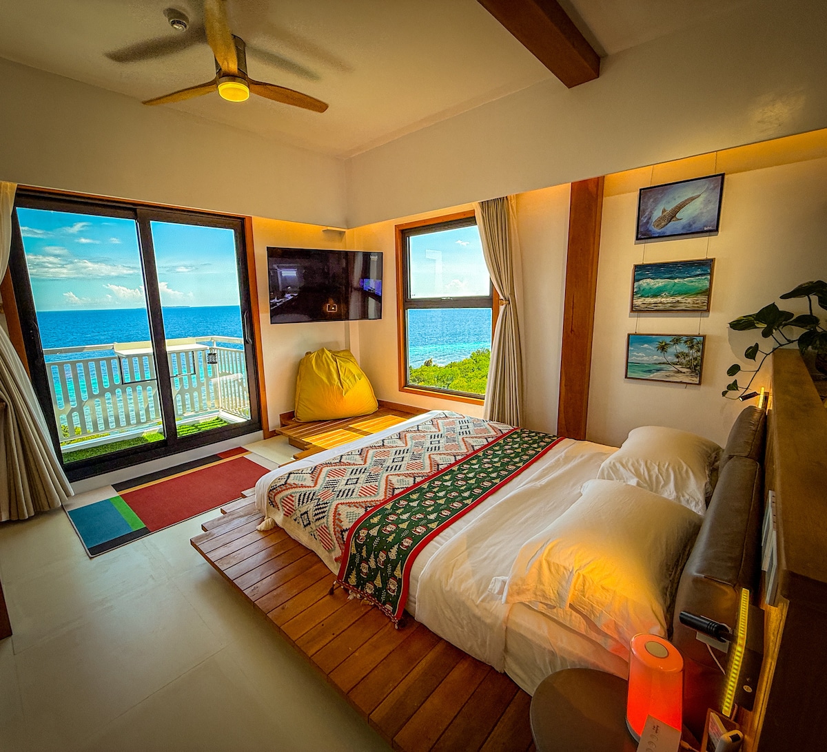 This one-of-a-kind seaside retreat offers sweeping ocean views stretching to the horizon. From sunrise to sunset, every moment is a living postcard. To ensure a seamless stay, 🚗 we provide free Airport/Tagbilaran pier transfers and 🚌4 daily shuttles to Alona Beach.The space is thoughtfully equipped with smart home features for an effortless stay. Artistic details add elegance, creating a perfect haven for solo reflection, romance, or creative work. A sanctuary where inspiration meets serenity.