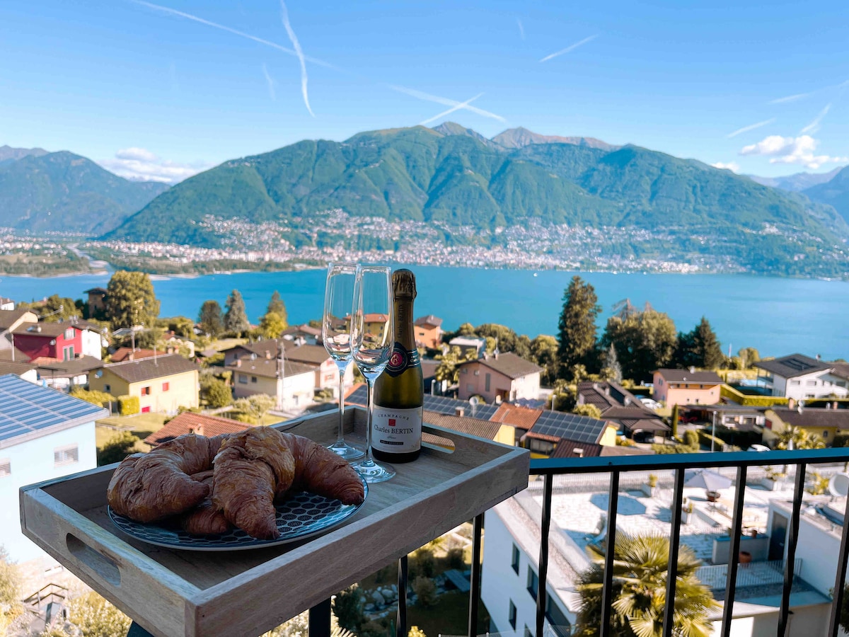 Studio with a magnificent view of Lake Maggiore and the surrounding mountains. It is located in a very quiet and convenient area for reaching Tenero, Locarno, the Verzasca valley and surroundings. Departure for mountain excursions directly from the house. The studio flat with private access is reached via a long staircase. Possibility to park the car in public parking spaces located about 15 minutes away. Bus stop reachable in 5 minutes. standing. Tenero station 20 min. standing.