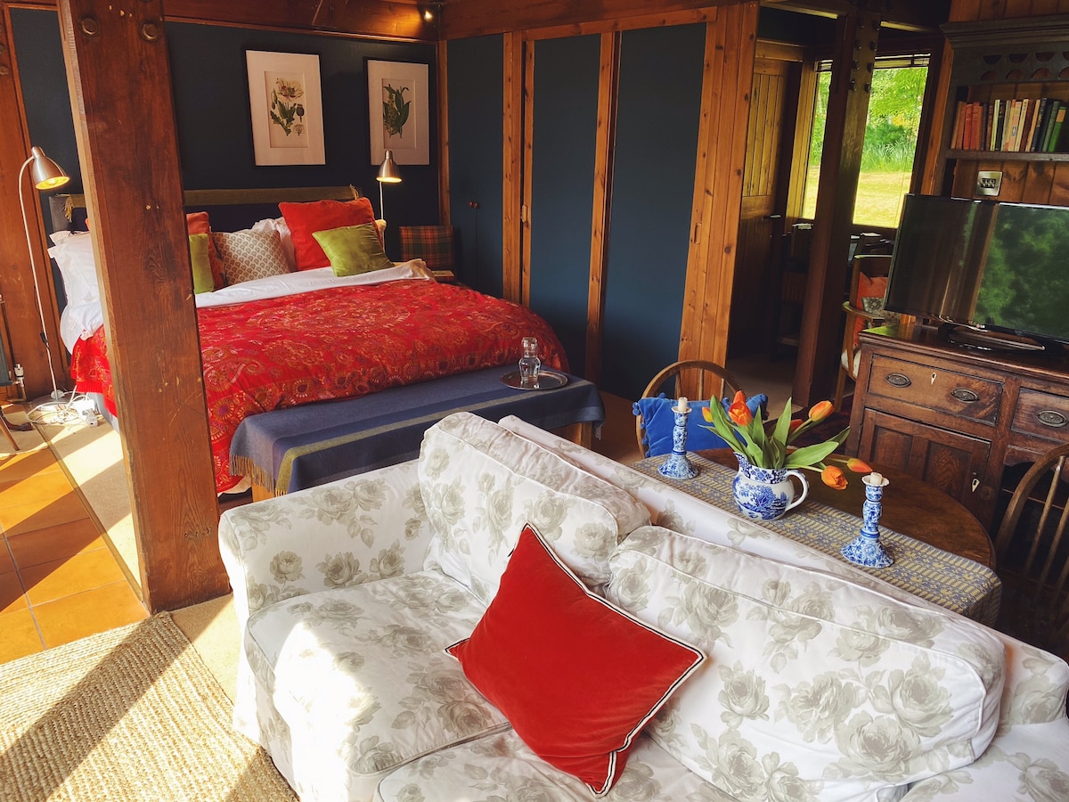 The Bolthole is self-contained, luxuriously comfortable, beautiful, quirky and pet friendly. Nestled on the hillside of the market town of Aberfeldy, within easy walking distance of the centre, this peaceful guest suite offers a unique space to unwind and relax away from the crowd. Enjoy woodland walks direct from the garden gate, take a long soak in the en-suite’s enormous bath-tub built for two. Cosy up on the sofa with a good book or sit in the garden by the fire & BBQ, watching the sun set.