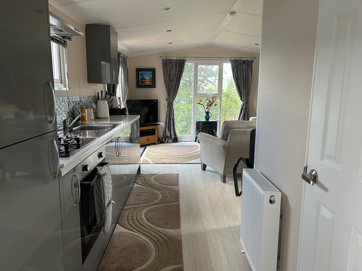 Cois Loch Lodge is a unique lodge situated in a peaceful setting with magnificent views over Loch Lomond and the hills beyond. Nestled at the end of a private road between Drymen and Balmaha, it has its own private parking and enclosed garden. French doors open out onto a fabulous decking area furnished with a table and garden sofas. A few steps down from the deck sits a tastefully furnished Scandinavian BBQ hut. No matter the weather, you can still enjoy a BBQ!