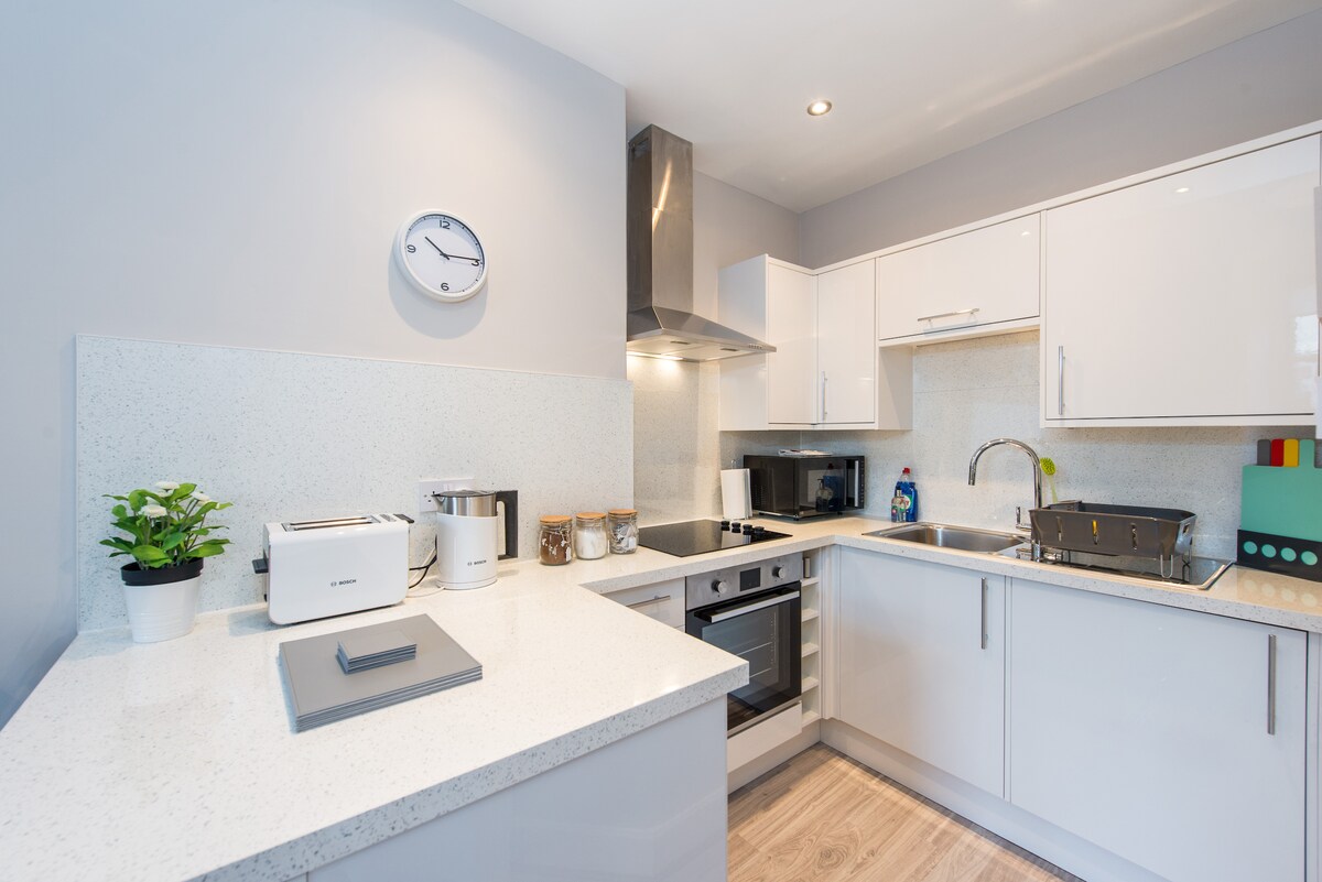Stunning, newly refurbished modern 1 bedroom flat. Bus stop in front of the building. Direct buses will take you to the city centre in less than 15mins. Convenience stores are two blocks away. Free residents parking on site. Fast internet and 65" TV unit in the open plan living room.Full privacy with soundproof walls.Fully functioning kitchen and washing machine available.Host is local to the area and and can answer any questions you have. Seaside and Royal Botanic Garden within walking distance