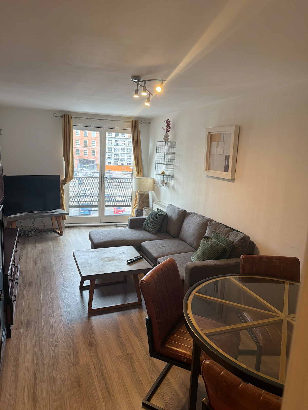 This bright and airy apartment has a living room which is spacious and beautiful, it includes two extremely comfortable sofas (one of which is a sofa bed) and a large TV. There is also a dining area which provides a great opportunity to get together and enjoy a delicious meal. The kitchen is full-equipped with all the necessary appliances to cook up a delicious meal. There are 2-bedrooms and 2-bathrooms as well as extremely large windows around the house which let in plenty of natural light.