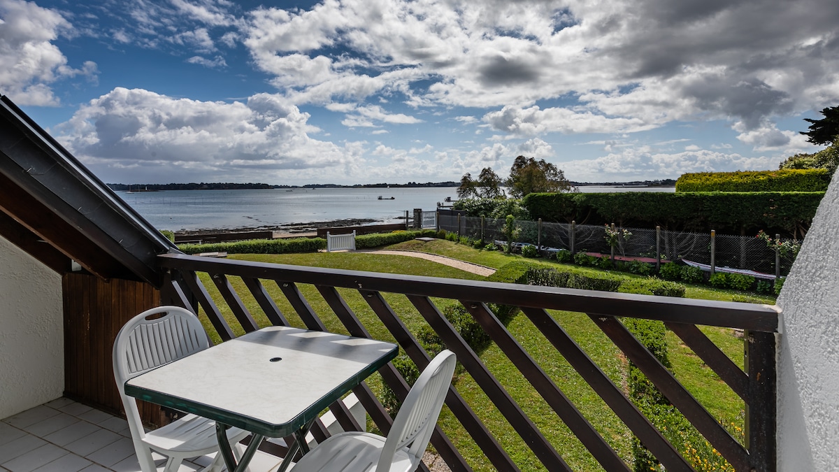 Dans résidence calme, appartement de 80 m2 -classé Meublé de Tourisme 3 Etoiles- spacieux et confortable, équipé de la Wifi, la vue mer est imprenable et la plage au pied du jardin ! Depuis la résidence, vous profiterez de balades le long du sentier littoral, notamment pour accéder à la plage de Kernevest (10 mns à pied - école de voile). A proximité, vous découvrirez la Trinité sur Mer, Carnac, Quiberon, Auray ....ATTENTION: du 5avril au 5 mai et du 28 juin au 12 septembre arrivées le samedi.