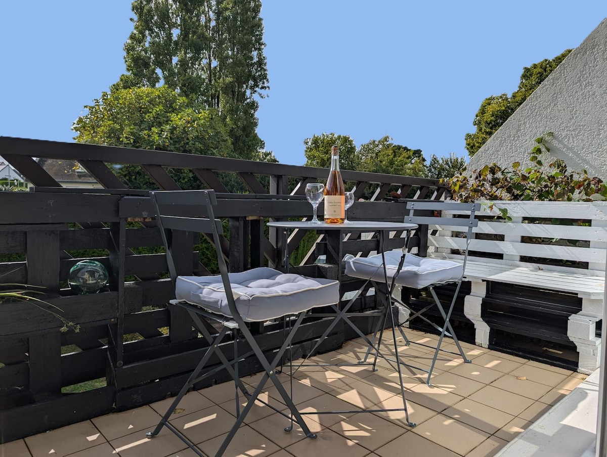 Charmant logement avec sa petite terrasse où vous profiterez d'un petit déjeuner face au soleil levant et d'une vue sur le Golfe. Vous n'aurez que quelques minutes à pied pour aller prendre votre bain de mer et vous régaler dans les crêperies et restaurants très proche. Sans oublier le sentier côtier (tour complet 24 kms) sur lequel vous apprécierez la beauté de cette perle du Golfe.