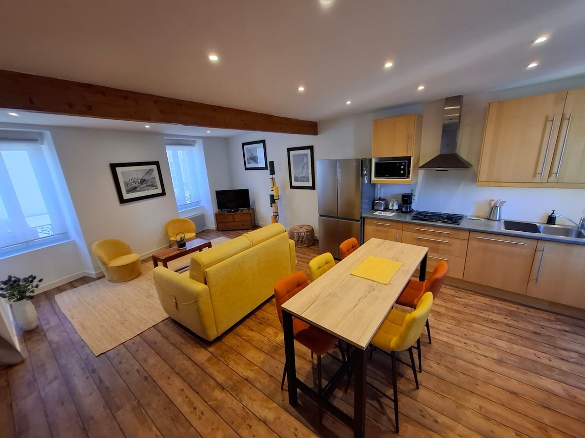 Agréable appartement de 53 m2 idéalement situé sur le port de St goustan à deux pas des restaurants et 5 minutes du centre ville dans un immeuble calme avec ascenseur et place de parking. Appartement chaleureux avec terrasse offrant une belle vue sur la rivière d'auray. Connecté à la fibre, Il se compose d'une chambre (1 lit 160/190), d'un coin nuit (1 lit 140/190), 1 salle d'eau ( douche italienne), wc independant et d'une cuisine équipée ouverte sur un salon/sejour. Terrasse ouverte.