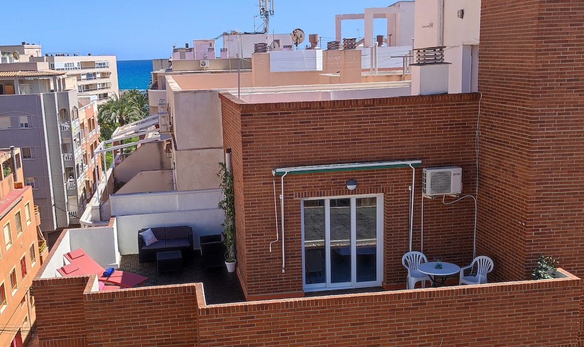 Very sunny and newly renovated penthouse right on the promenade with stunning views of the Mediterranean Sea and the pool. It has a spacious living room and 2 bedrooms with direct access to a large terrace where you can rest, sunbathe and lunch. The apartment is fully equipped (bed linen, towels, kitchenware...) with WIFI and AC. Located in the most touristic area. Due to the Spanish regulations we will need a photo ID or passport uploaded into the Airbnb platform before the check in day.