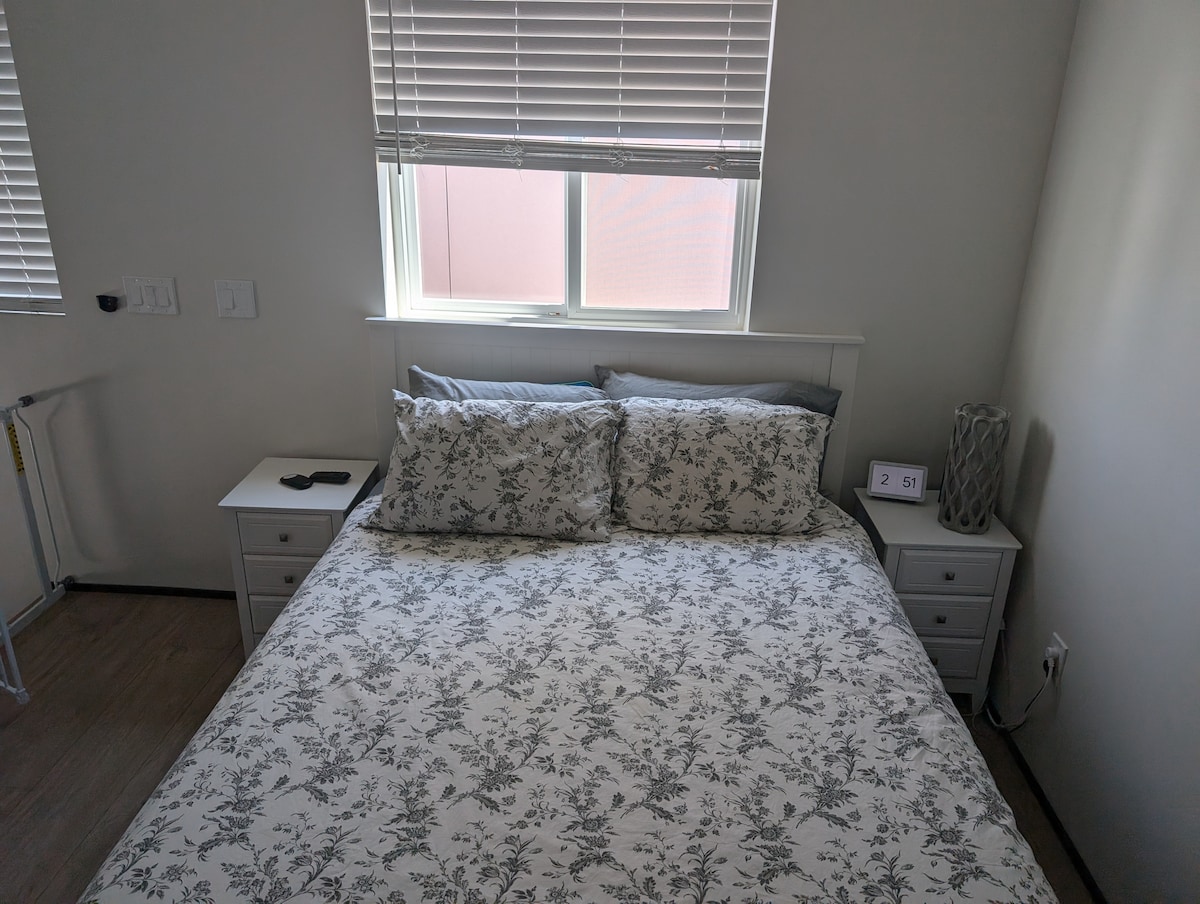 Welcome to our cozy apartment in Stockton! Ideal for couples, this space offers a private suite with a comfortable queen bed and a dedicated bathroom. Our kitchenette is equipped with everything you need to prepare your favorite dishes. Relax in the living room while watching TV or surfing the internet with our high-speed Wi-Fi. You'll have your own private entrance. Don't wait any longer and book now for a relaxing getaway in Stockton