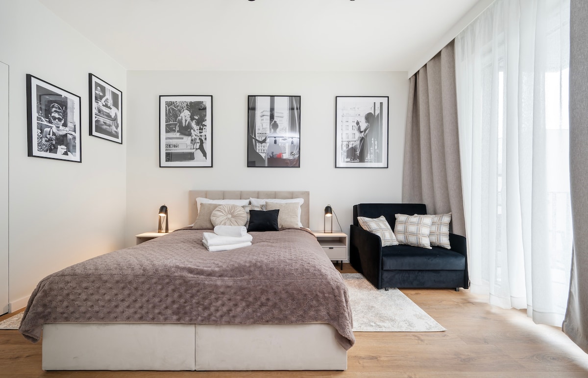 Work and Rest Apartment to idealna przestrzeń dla osób ceniących balans między produktywnością a relaksem. Nowoczesny apartament położony w prestiżowej Strefie Progress w centrum Łodzi, łączy komfort codziennego pobytu z dodatkowymi udogodnieniami dla aktywnych i pracujących w podróży. Do dyspozycji gości pozostaje siłownia oraz strefa co-workingowa.