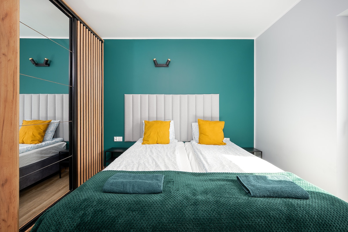 Miejsce doskonałe na pobyt służbowy lub na odpoczynek dla rodziny. Bliskość atrakcji takich jak Manufaktura, Orientarium, Aquapark Fala czy park na Zdrowiu. Dobra komunikacja z centrum, dostępny jest bezpłatny parking. W pobliżu znajduje się Żabka i Lidl oraz restauracja Mąka i Wino. W mieszkaniu znajdują się dwie sypialnie, każda wyposażona w podwójne łóżko i telewizor. Do dyspozycji jest kuchnia z lodówką, płytą gazową, mikrofalówką i kawiarką oraz łazienka z prysznicem i pralką.