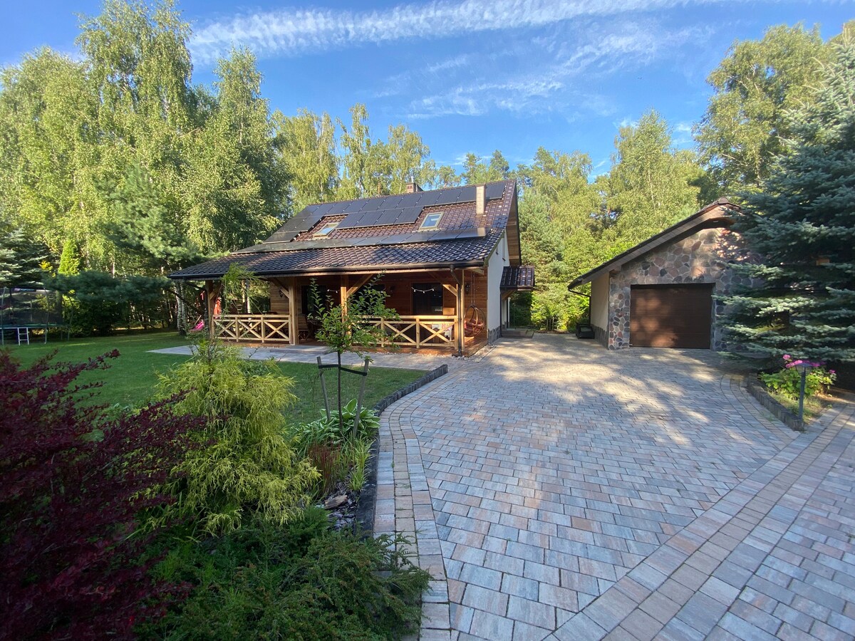 Malowniczy dom przy lesie.