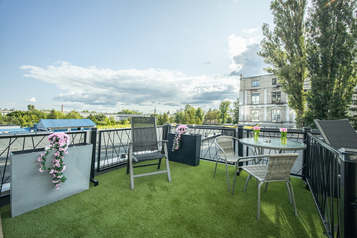 Stylowy apartament na 1. piętrze nowoczesnego drapacza chmur w centrum Łodzi (ul. Wigury 23). Do dyspozycji mały, prywatny taras – idealny na poranną kawę lub wieczorny relaks. W budynku dostępne są dwie windy od poziomu 0. Apartament został zaprojektowany z myślą o Twojej wygodzie – znajdziesz tu w pełni wyposażoną kuchnię z piekarnikiem i zmywarką, szybkie Wi-Fi oraz dostęp do aplikacji i programów TV – wszystko w cenie pobytu.