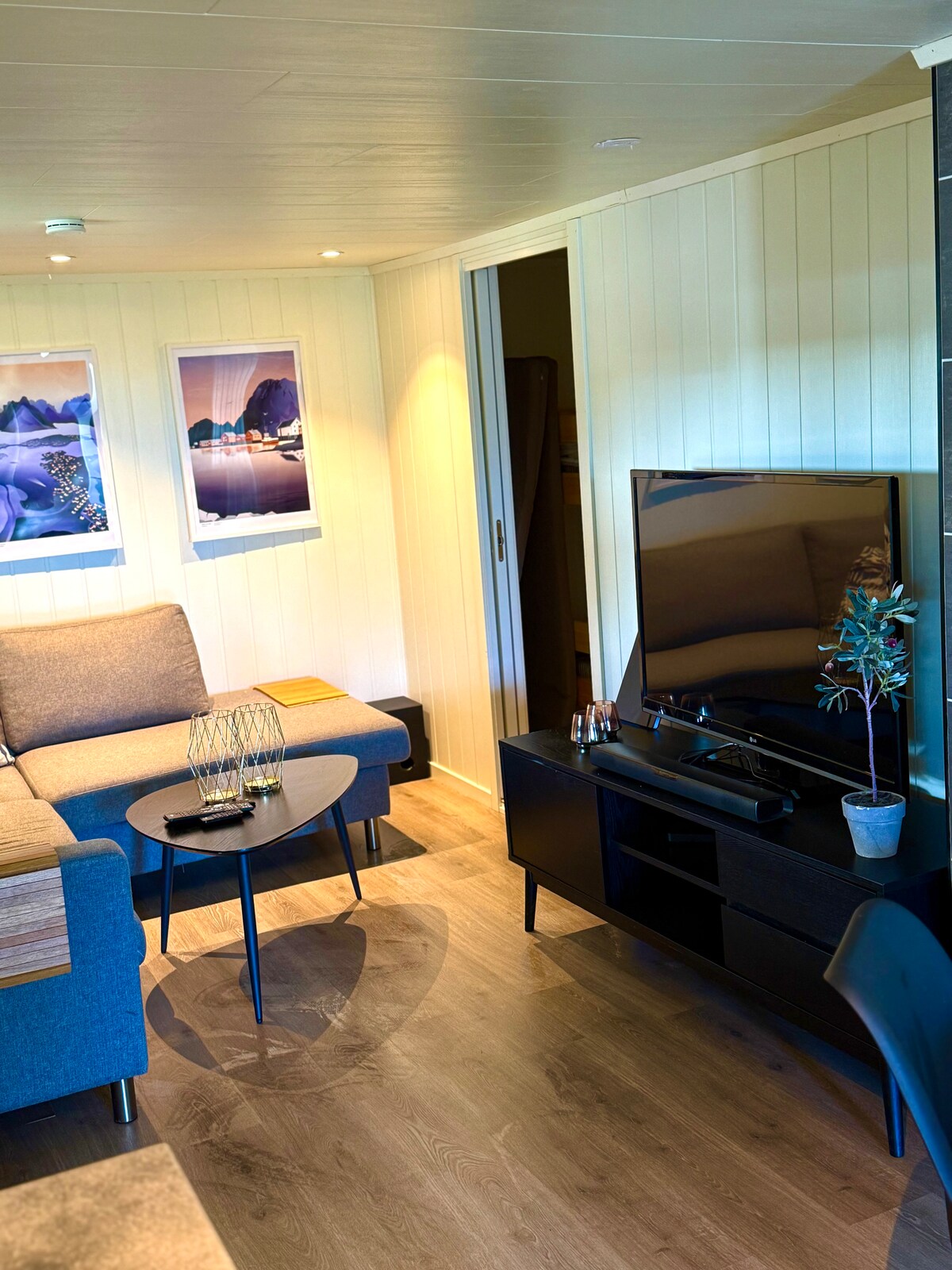 Sandersstua Stamsund is a family-friendly, cozy holiday apartment with a sauna, hot tub, and stunning fjord and mountain views. Fully renovated and modern, ideal for couples, families, and nature lovers. Fully equipped kitchen, cozy living room with fireplace and Smart TV, child-friendly. Rental car or motorboat available at extra cost. Perfect base for Lofoten adventures.