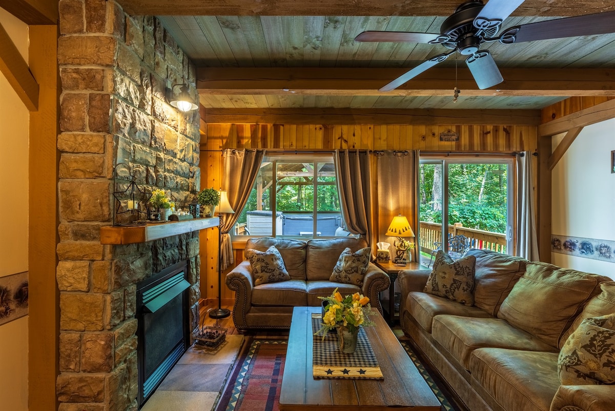Escape to your romantic cabin in the heart of Hocking Hills—just minutes from Lake Logan and local restaurants. Soak in the private hot tub, relax in the outdoor barrel sauna, and cozy up by the wood-burning fireplace. End your night under the stars by the firepit, surrounded by nature and quiet. Whether you're celebrating or simply reconnecting, this peaceful retreat is designed for rest, romance, and meaningful moments.