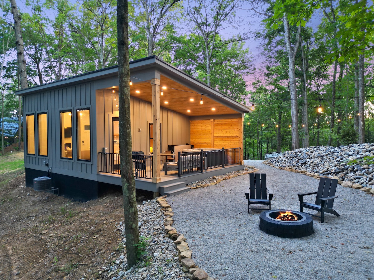 Welcome to The Nest by ReWild Rentals. Escape to this luxurious tiny cabin nestled among the trees - a perfect blend of modern design + nature. Thoughtfully designed for couples or solo travelers, this cozy retreat has everything you need for a relaxing getaway. What You’ll Love: -Private Hot Tub -Rain Shower + Soaking Tub -King Enclosed Bedroom -Full Kitchen (including: dishwasher/ice maker/microwave) -Cozy Gas Fireplace -Covered Deck + Firepit -Central Location