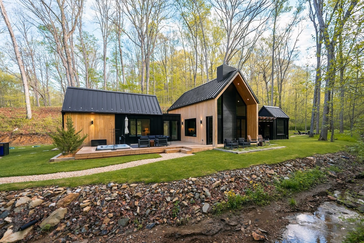 Why you'll ❤️ The Ashton: ・Secluded & romantic 1-bedroom escape in the woods ・Private hot tub under the stars ・Modern design with floor-to-ceiling windows ・Pet-friendly getaway for couples & pups ・Stylish full kitchen・Cozy fire pit area ・Fast Wi-Fi + Smart TV w/ streaming ・Nature escape just minutes from Hocking Hills ・ Luxurious walk-in shower & double sinks ・Ideal for a romantic weekend or solo retreat Click "❤️ Save" to easily find us again. Read the full listing for all the dreamy details.