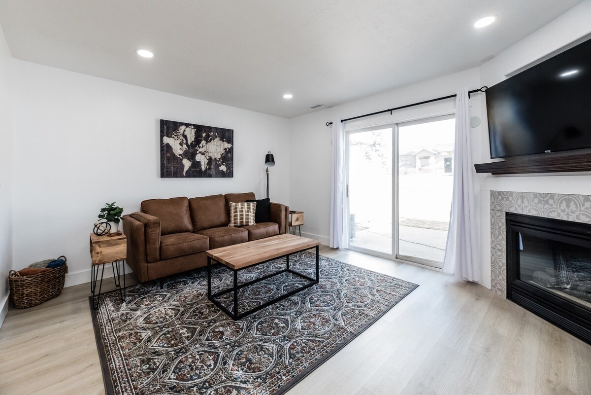 Experience a peaceful getaway with friends & family at this cheerful home within walking distance to USU & minutes away from all the adventures Logan Canyon has to offer! Embrace relaxation & excitement all in one place! Ensuring you have the most comfortable stay, we provide the softest of bedding & linens & this newly remodeled home is set up with central heat & A/C. Enjoy our full kitchen & cute coffee bar. Relax with movie nights in our living room on a comfy couch that fits 8 people!
