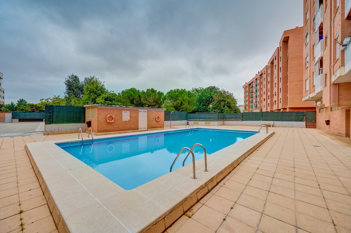 Apartamento ideal para familias con niños y mascotas en una zona tranquila con zonas verdes y parques (existen parcelas acotadas para el adiestramiento y esparcimiento de las mascotas) tiene dos baños ,piscina y garaje en la comunidad y está a 10 minutos escasos del centro en coche.Tiene una habitación con cama de matrimonio y cama individual de 90cm. El salón tiene un sofá cama doble y con opción de otra cama de 90cm, televisión, mesa de comedor y acceso a la terraza.