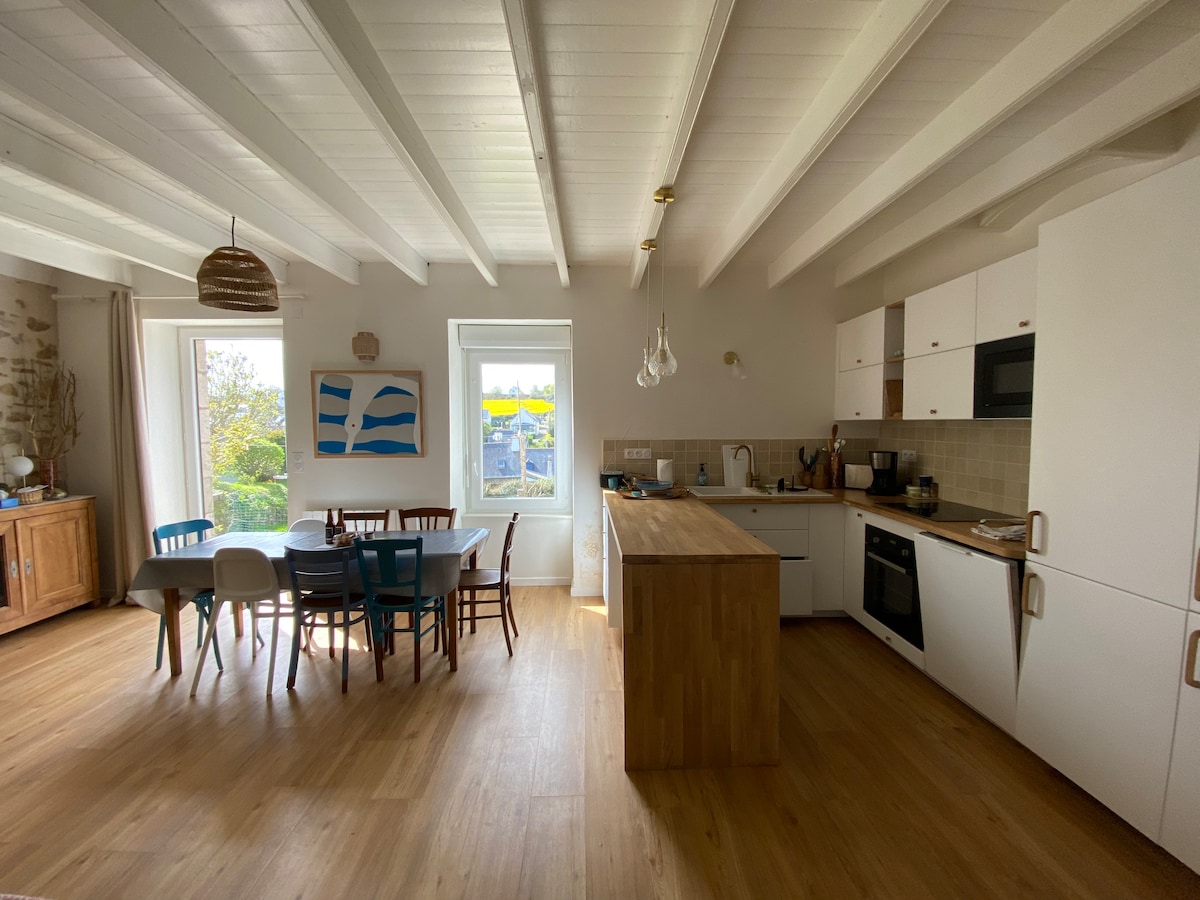 Maison bretonne en pierres Séjour avec cheminée fonctionnelle Cuisine toute équipée 2 chambres Salle de bain Terrasse avec barbecue et transats 2 petits coins pelouse Commerces , port , plages et GR34 à proximité. Ecole de voile Garage LINGE SUR DEMANDE 12 € par couchage LINGE DE TOILETTE 5€ par personne Le chauffage se fait par un poêle à granulés Chaque sac sera facturé 6 € Pour tout renseignements supplémentaires, n’hésitez pas à me contacter