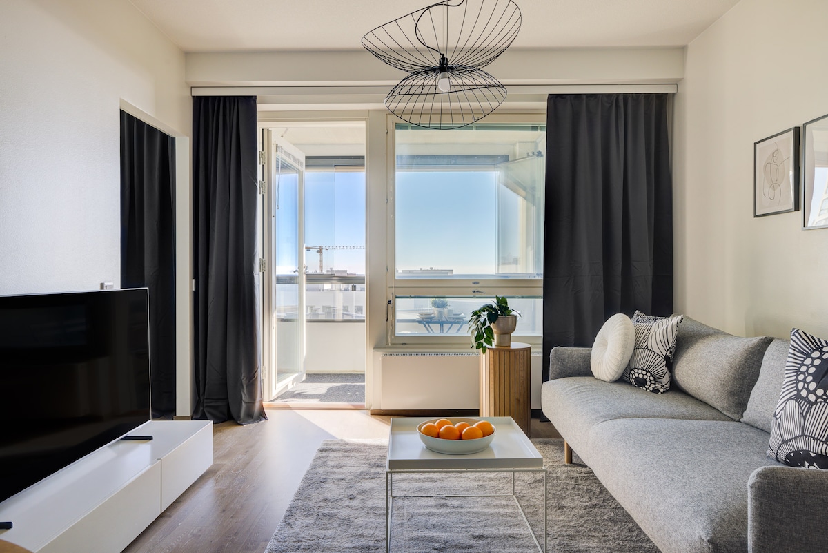 Welcome to our beautifully designed Scandinavian-style home with a private sauna! Located on top of a huge shopping mall Tripla, our spacious (59,5 sqm) 1 BR apartment is the perfect base for your stay in Helsinki. Location - Easy access from everywhere (train, bus, tram) - Train takes 5 min to city centre and 22 min to airport - Chargeable Parking available, ask for details - 24/7 big supermarket downstairs