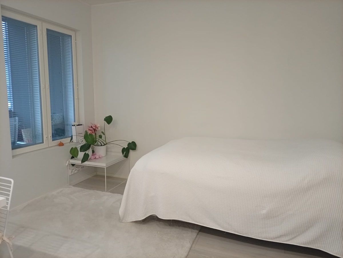 Welcome to modern guest Suite & Sauna in Finnish design & luxus house in beautiful garden with Beach area and barbeque place. Apartment is one open space /suite including living/sleeping space +minitchen, showerroom with spa feeling & sauna + wc. Also smart TV, working desk, fast Wi-fi & own parking & entrance. Mini kitchen with fridge, freezer, micro,water cooker & complimentary coffee. 2 beds which can be placed together. Towels and sheets included.Guest suite is part of our big home.