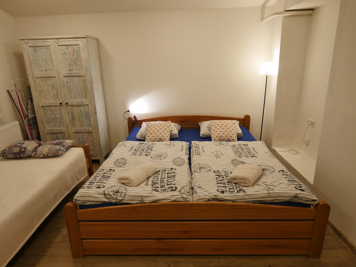 Celý byt v domě s hřejivým krbem na dřevo